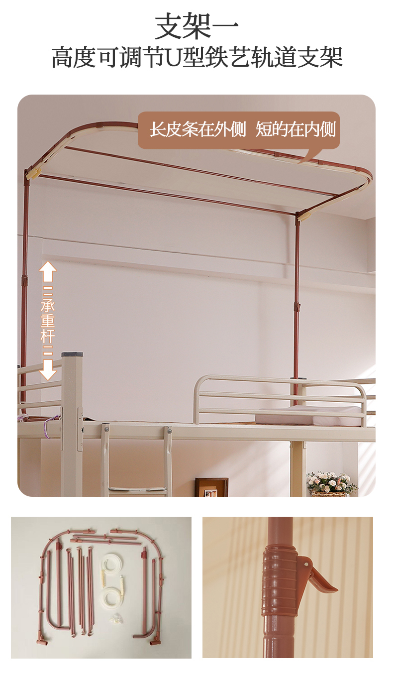 套餐三:顶+2纱+3门帘+支架-高度可调节U型铁艺轨道支架 | ¥185.00 |