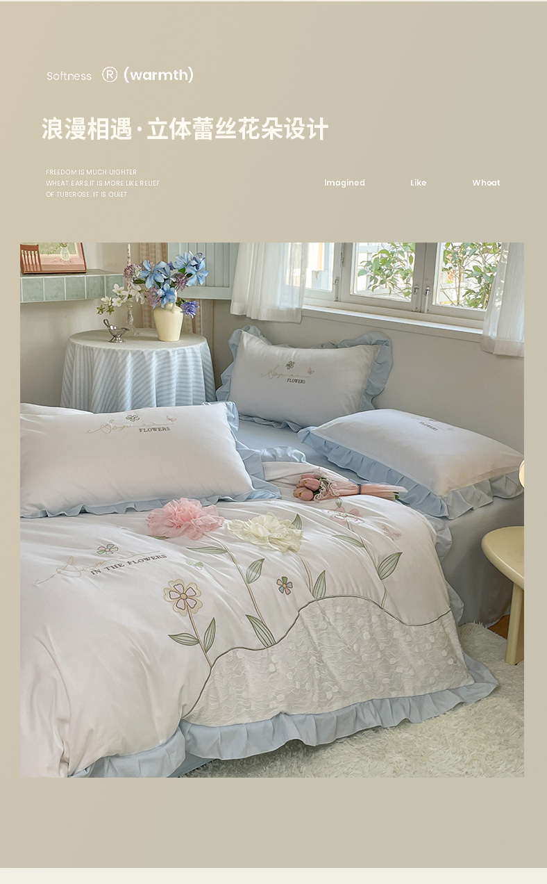 商品名称:AB家纺2025新款 水洗棉绣花四件套 丽芙塔-蓝日