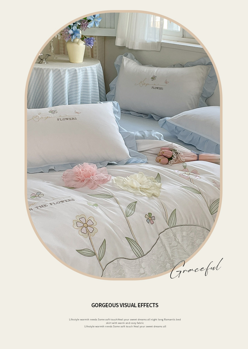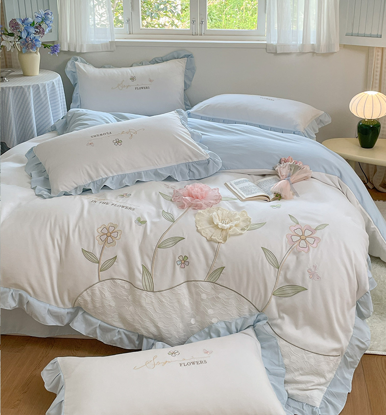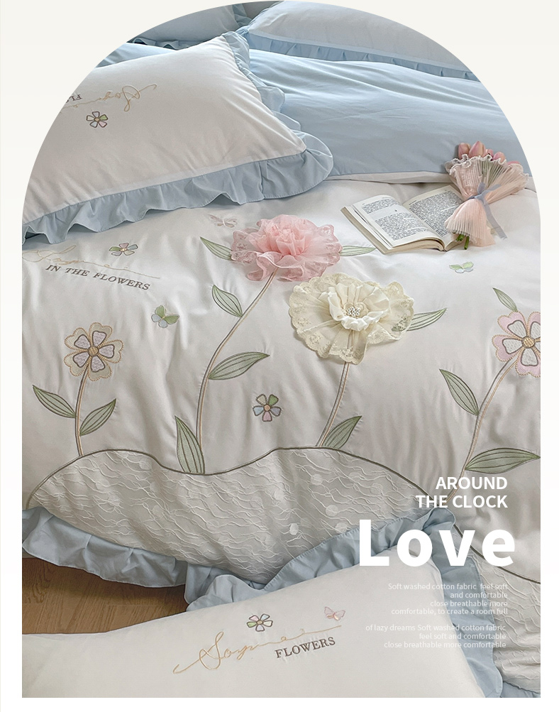 AB家纺2025新款 水洗棉绣花四件套 丽芙塔-蓝日