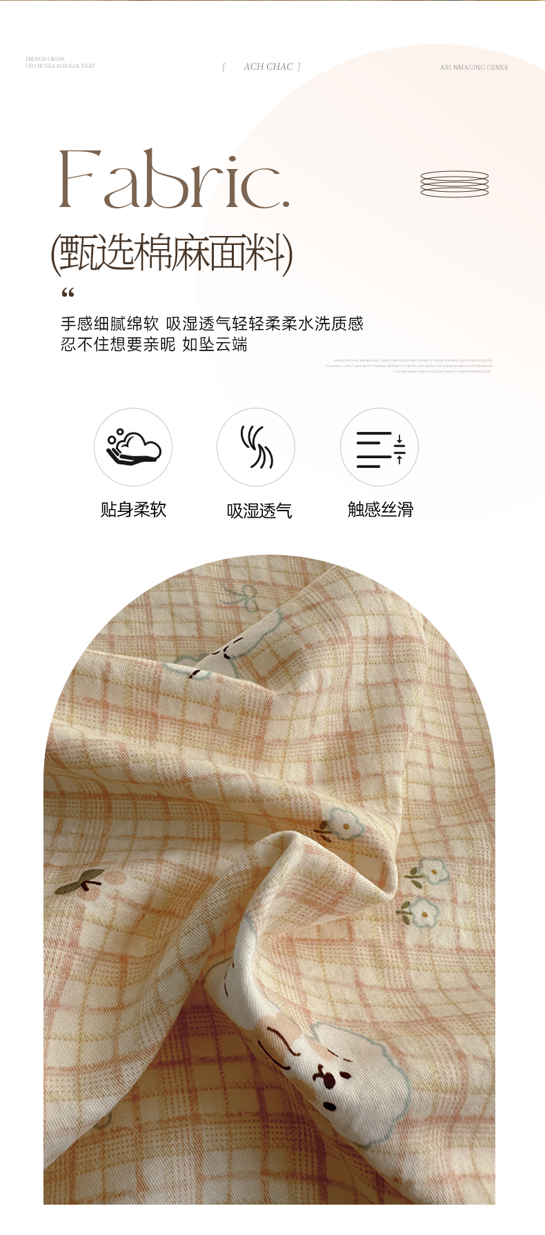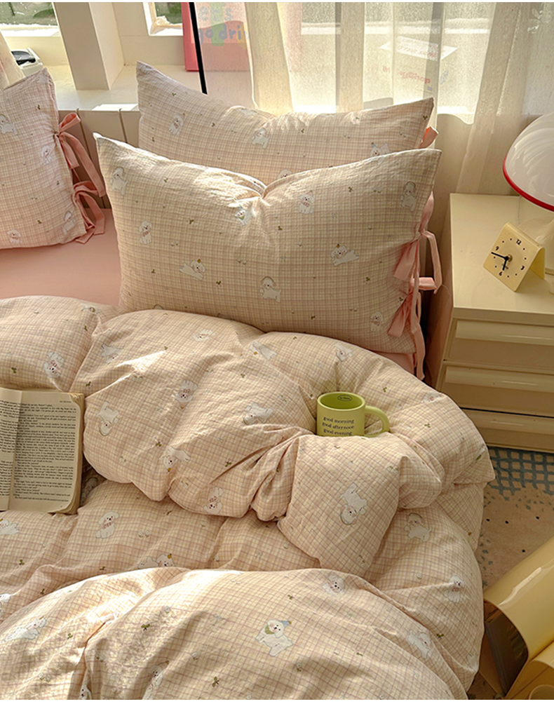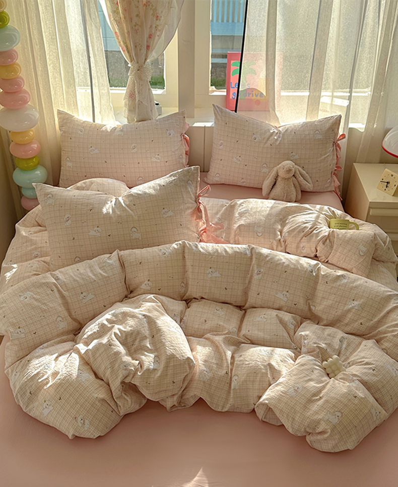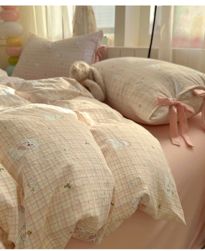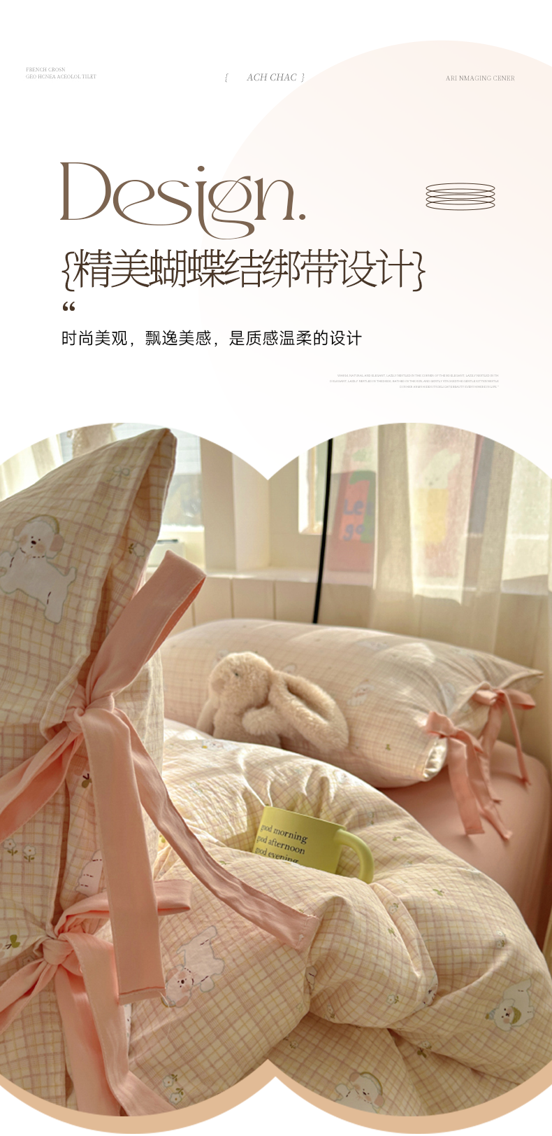 商品名称:漫仙阁家纺 2025新款蝴蝶结绑带款四件套-卡通系列 格子小狗