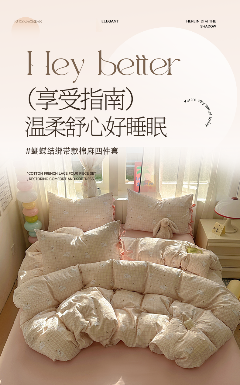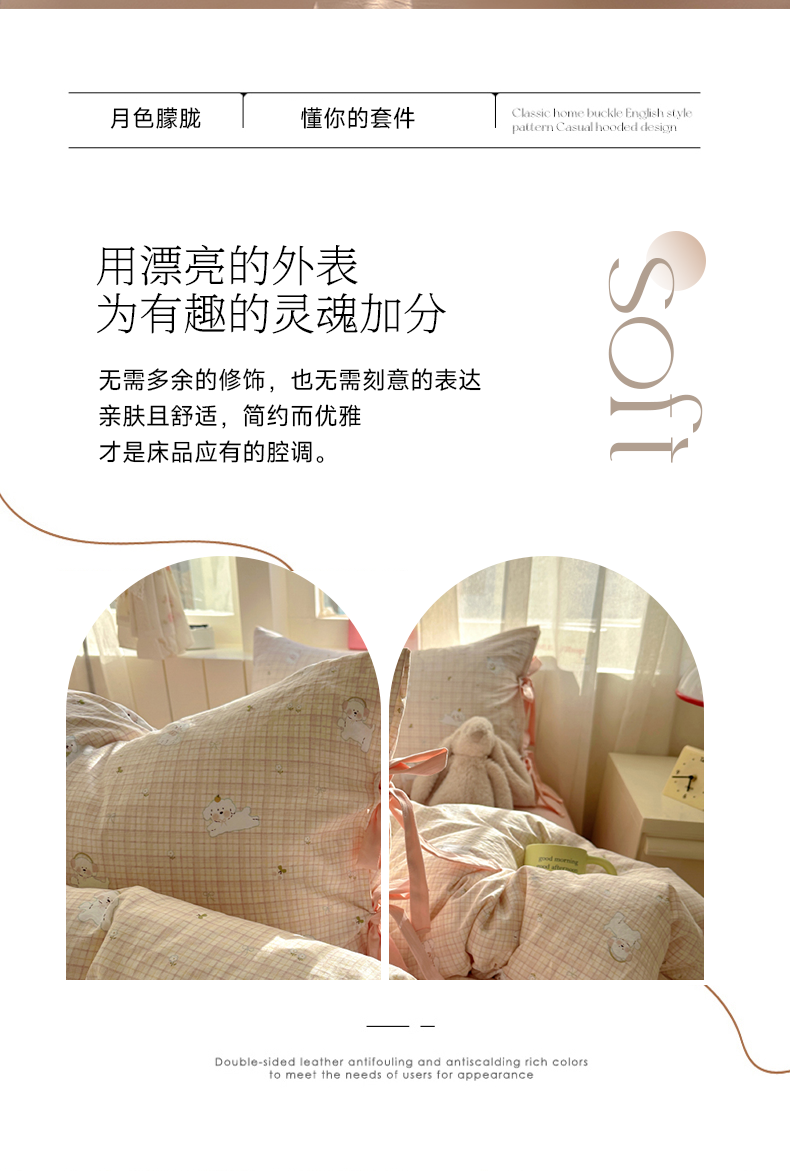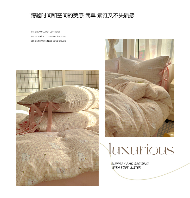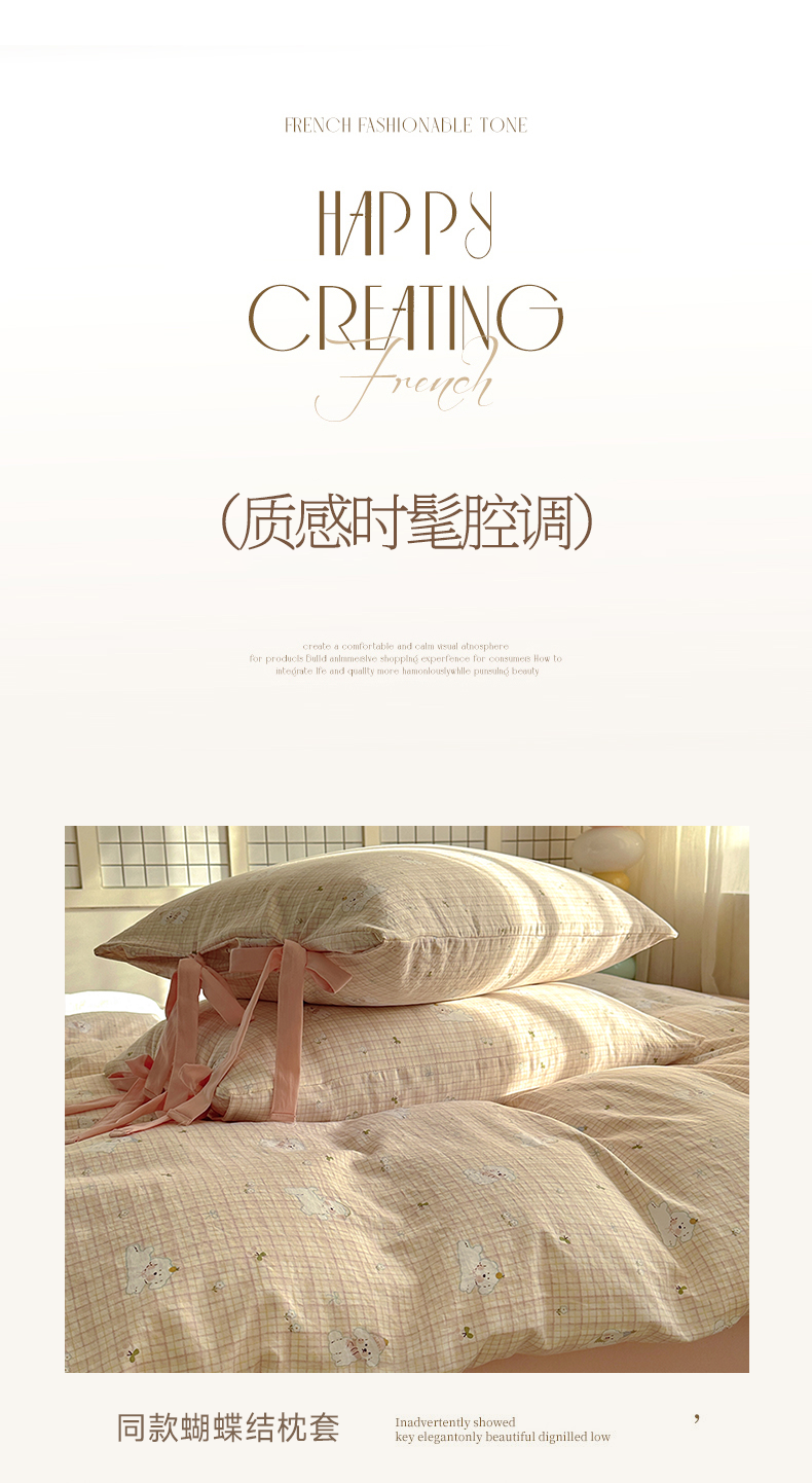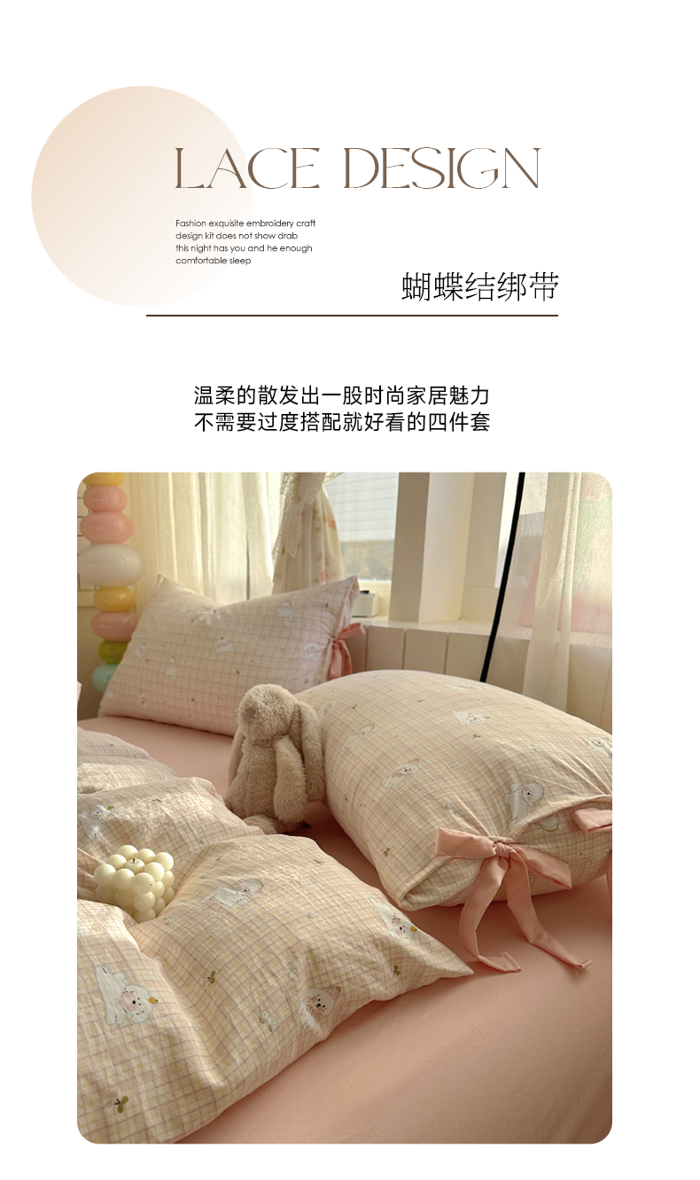 (总)漫仙阁家纺 2025新款蝴蝶结绑带款四件套-卡通系列,格子小狗,春日序曲,粉小兔,萌宠小狮子,裙子小兔,绅士小象-蓝,绅士小象-米黄,田园女孩,紫色小熊,欢乐小象