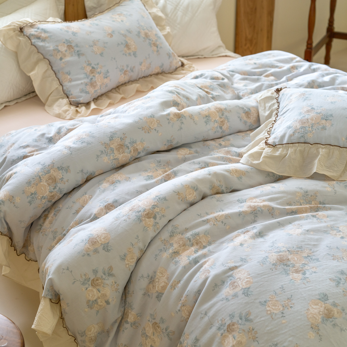 (总)洋铭区 2023新款全棉床盖三件套,微醺白