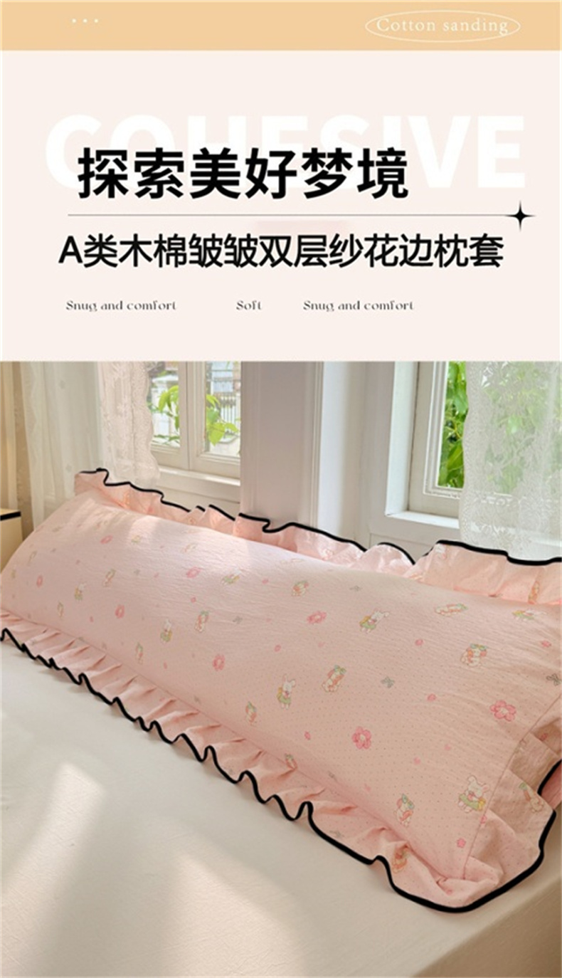 商品名称:圣比熊 2025新款云感双层纱双人花边枕套情侣双人1.5m枕芯套1.8床枕头套 花田小兔