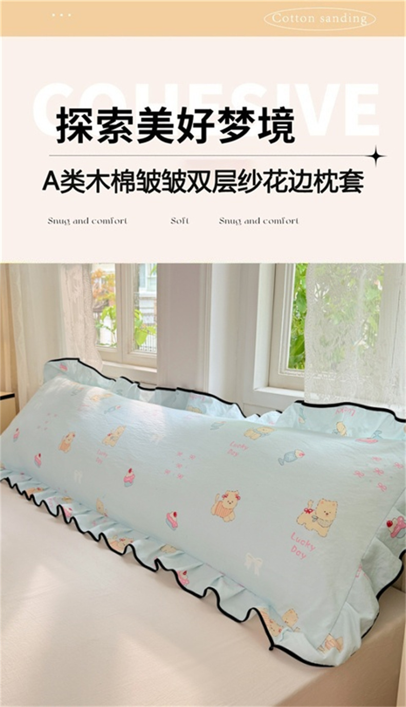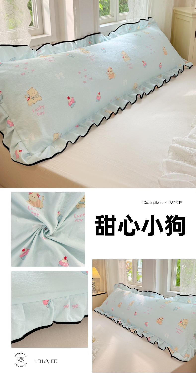商品名称:梦舒羽 2025新款云感双层纱双人花边枕套情侣双人1.5m枕芯套1.8床枕头套 甜心小狗