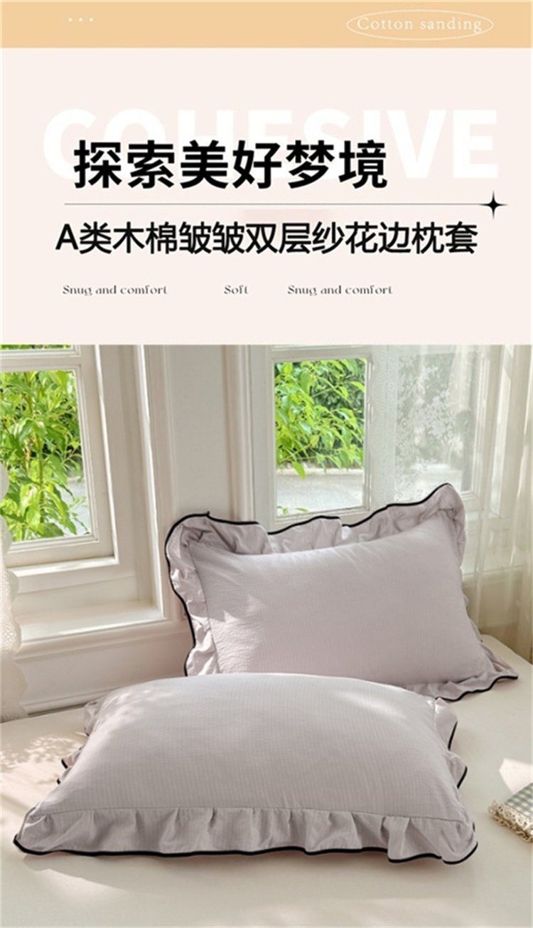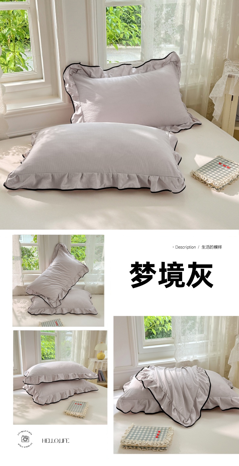 商品名称:梦舒羽 2025新款云感双层纱花边枕套宿舍学生48x74一对枕芯内胆套 梦境灰