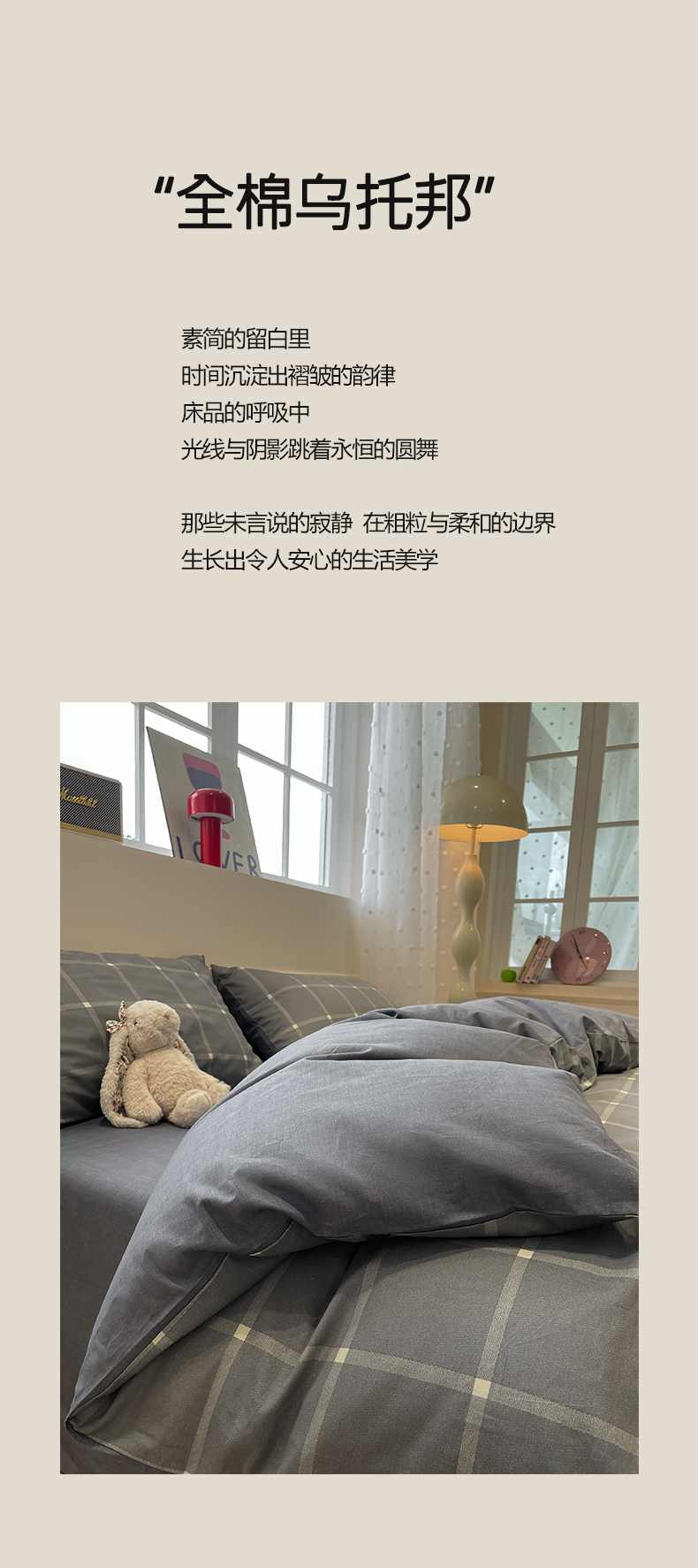 当前位置: 91家纺网 > 商品网购 > 床品套件 > 四件套 > 全棉普通四件套 > 涵宸家纺 2025新款全棉简约款四件套 麦田-灰