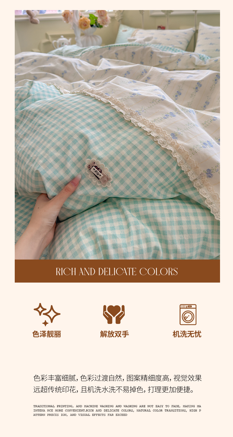 当前位置: 91家纺网 > 商品网购 > 床品套件 > 四件套 > 其它四件套 > 安莱生活 2025新款全棉纯棉小碎花刺绣花边款四件套 花趣格