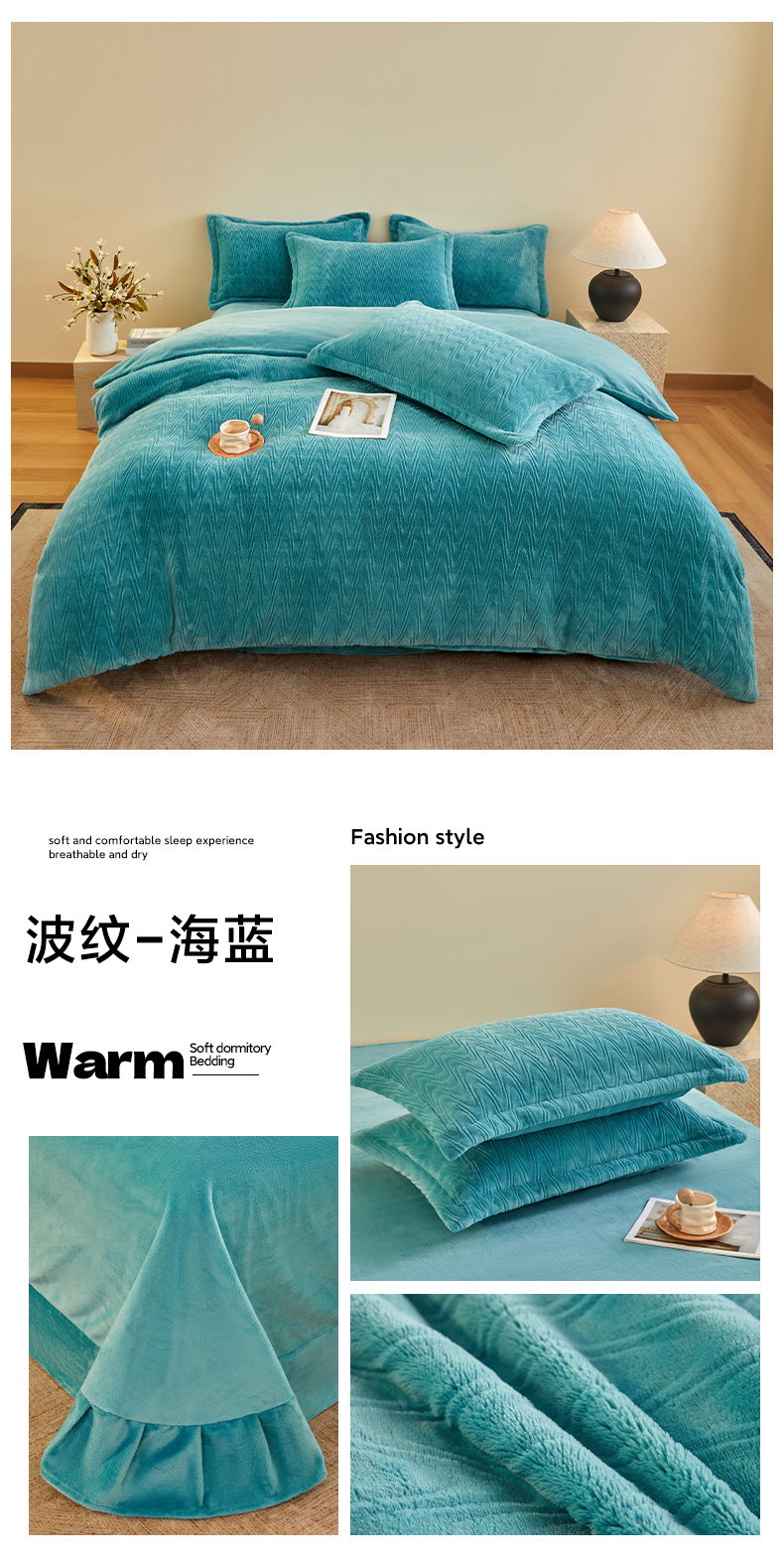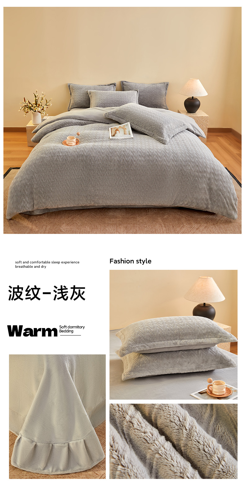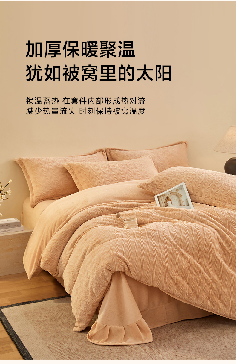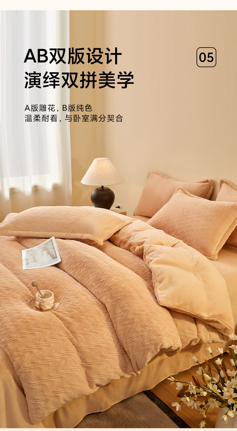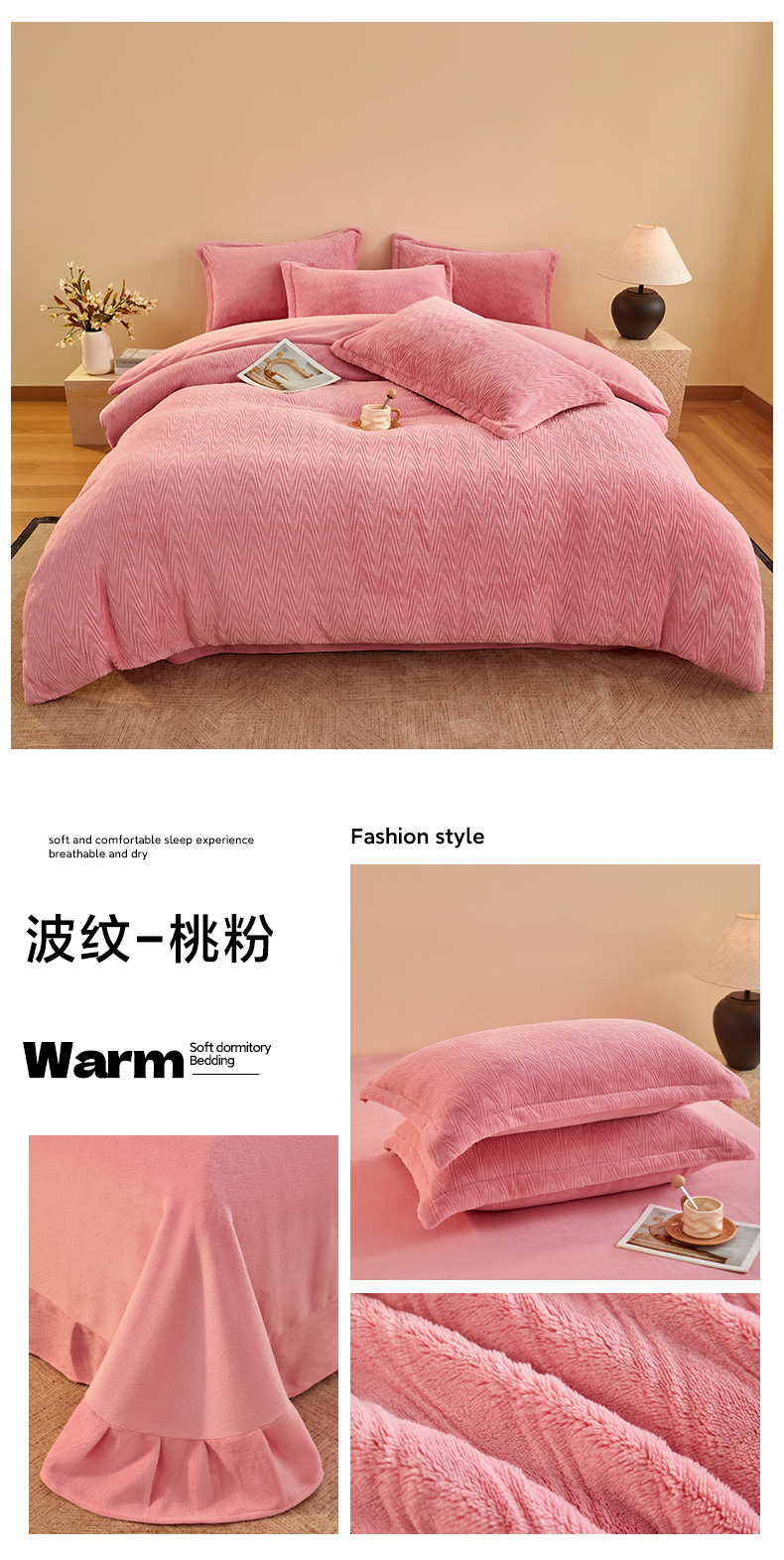 卡初家居(原微来) 2025新款A类亲肤舒适秋冬波纹系列全消光雕花牛奶绒四件套(提供买家秀) 波纹-桃粉