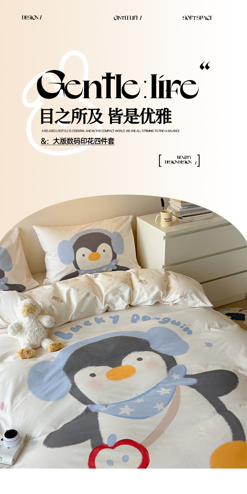 当前位置: 91家纺网 > 商品网购 > 床品套件 > 四件套 > 全棉普通四件套 > 寐居家纺 2025新款亲肤舒适全棉纯棉数码大阪印花四件套 QQ企鹅