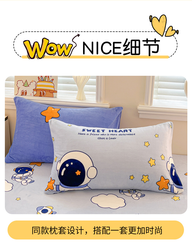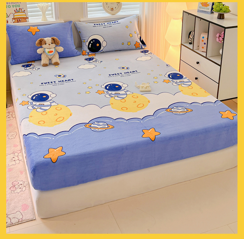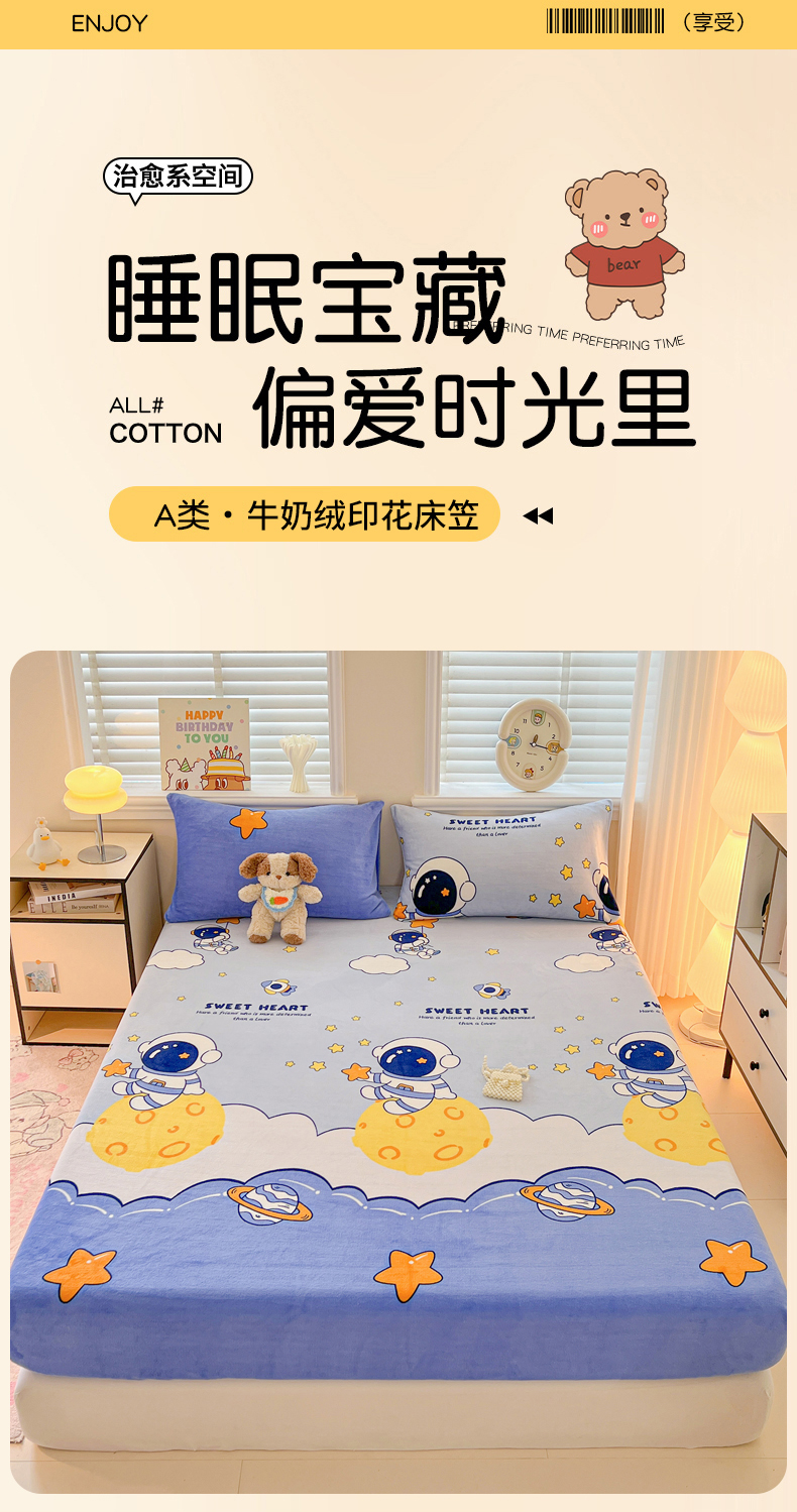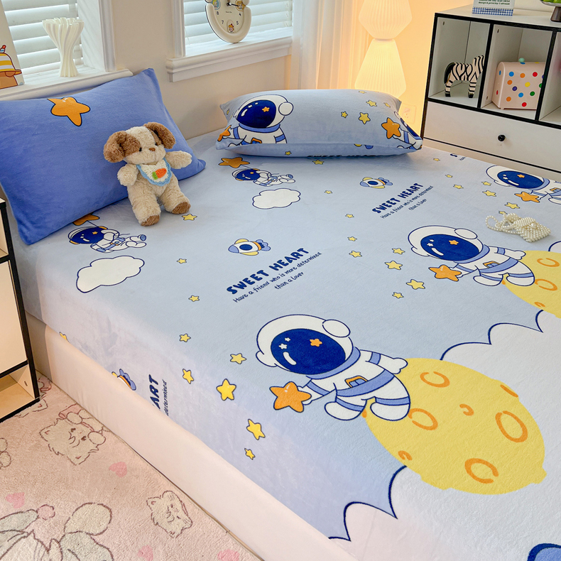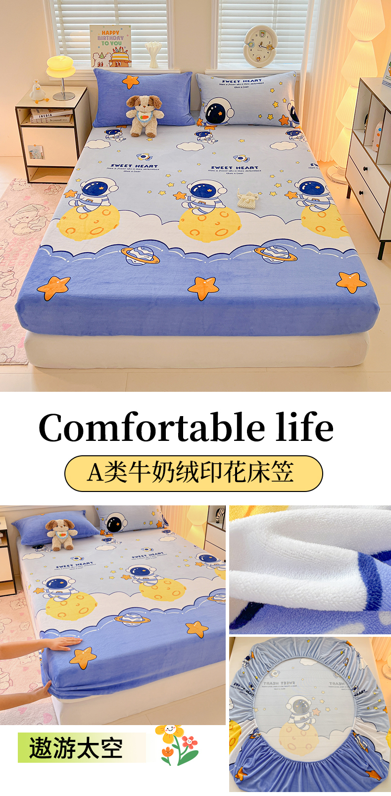 富馨莱2025年新款牛奶绒印花床笠 遨游太空人