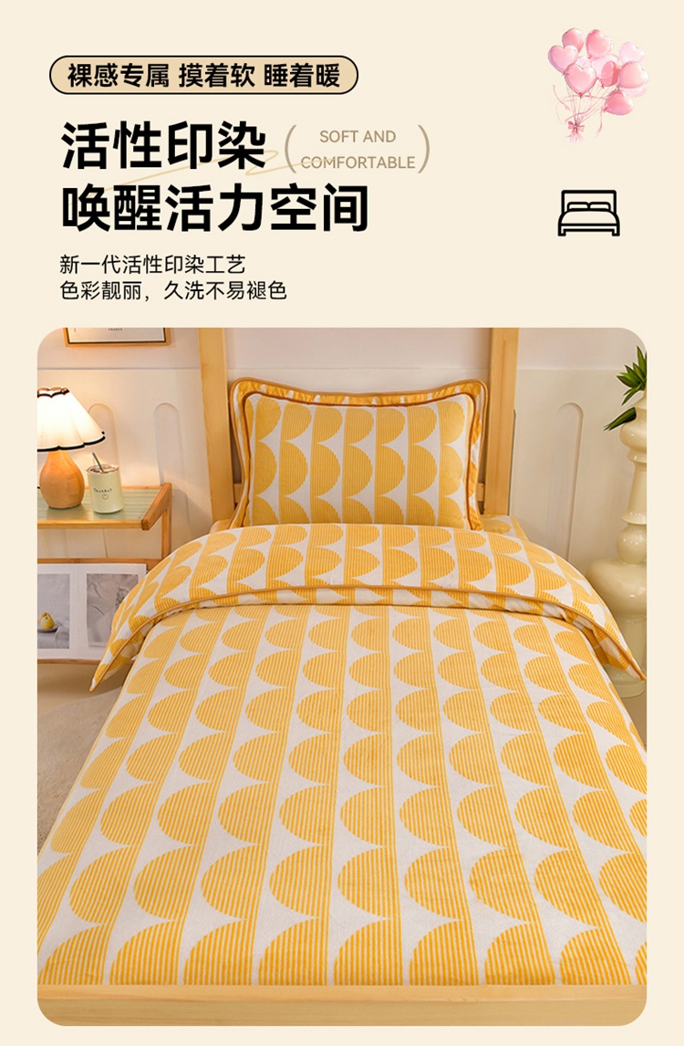 馨梦缘2025新款爆款高克重印花牛奶绒法莱绒学生三件套 幸福