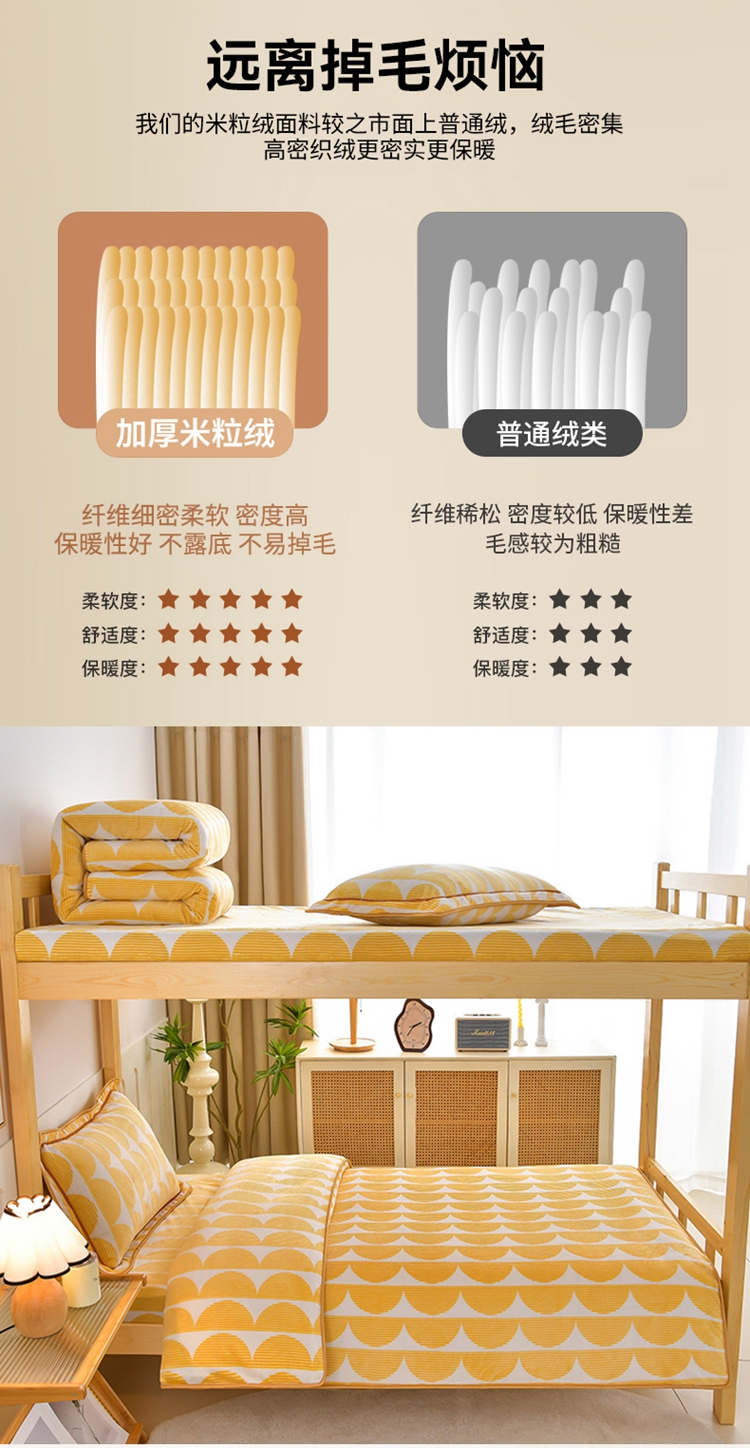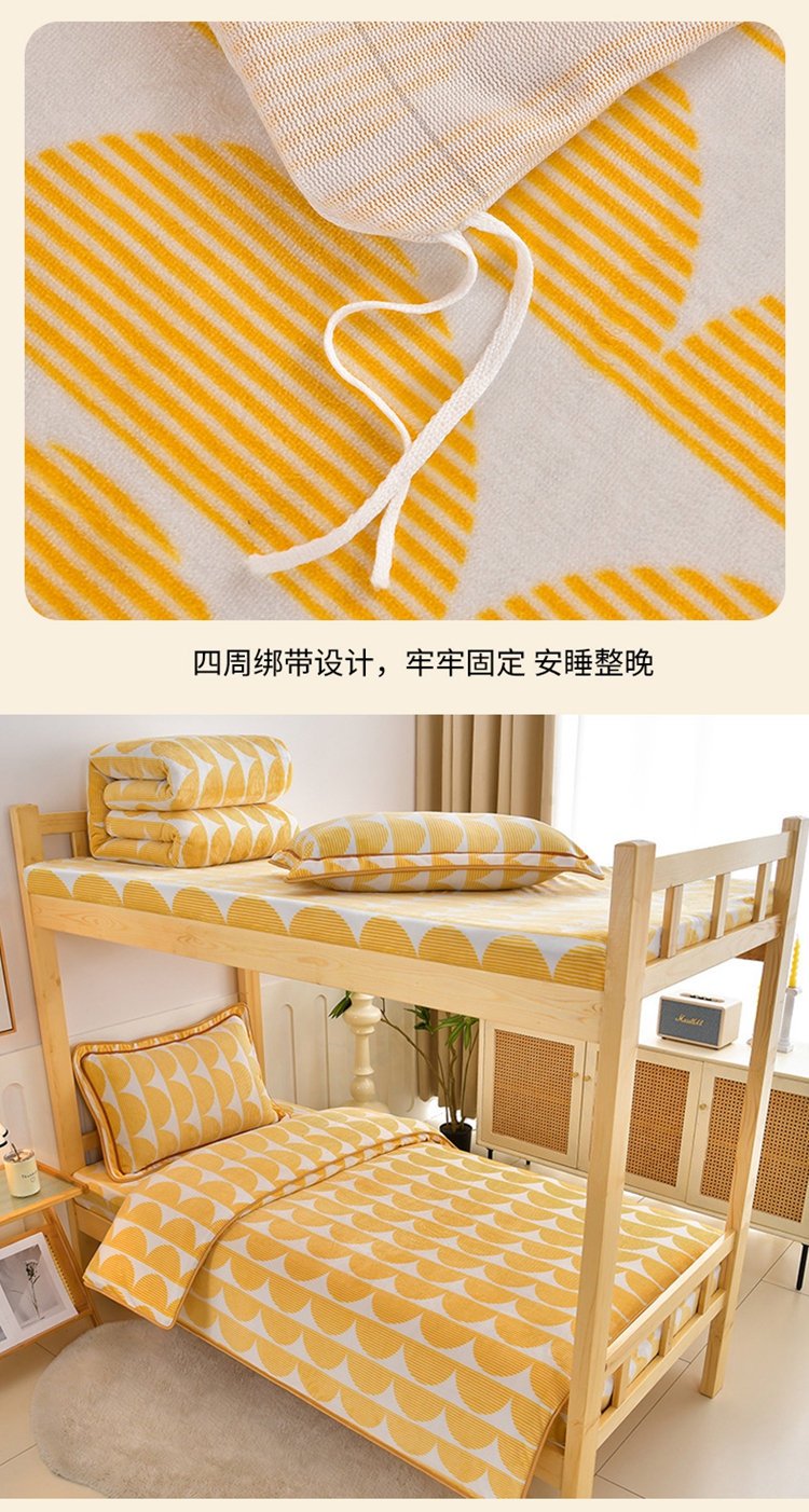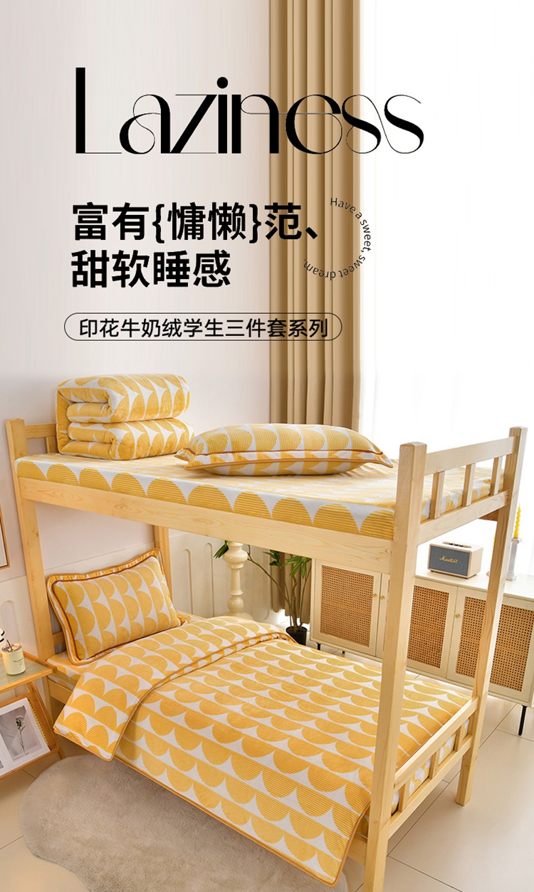 商品名称:馨梦缘2025新款爆款高克重印花牛奶绒法莱绒学生三件套 幸福