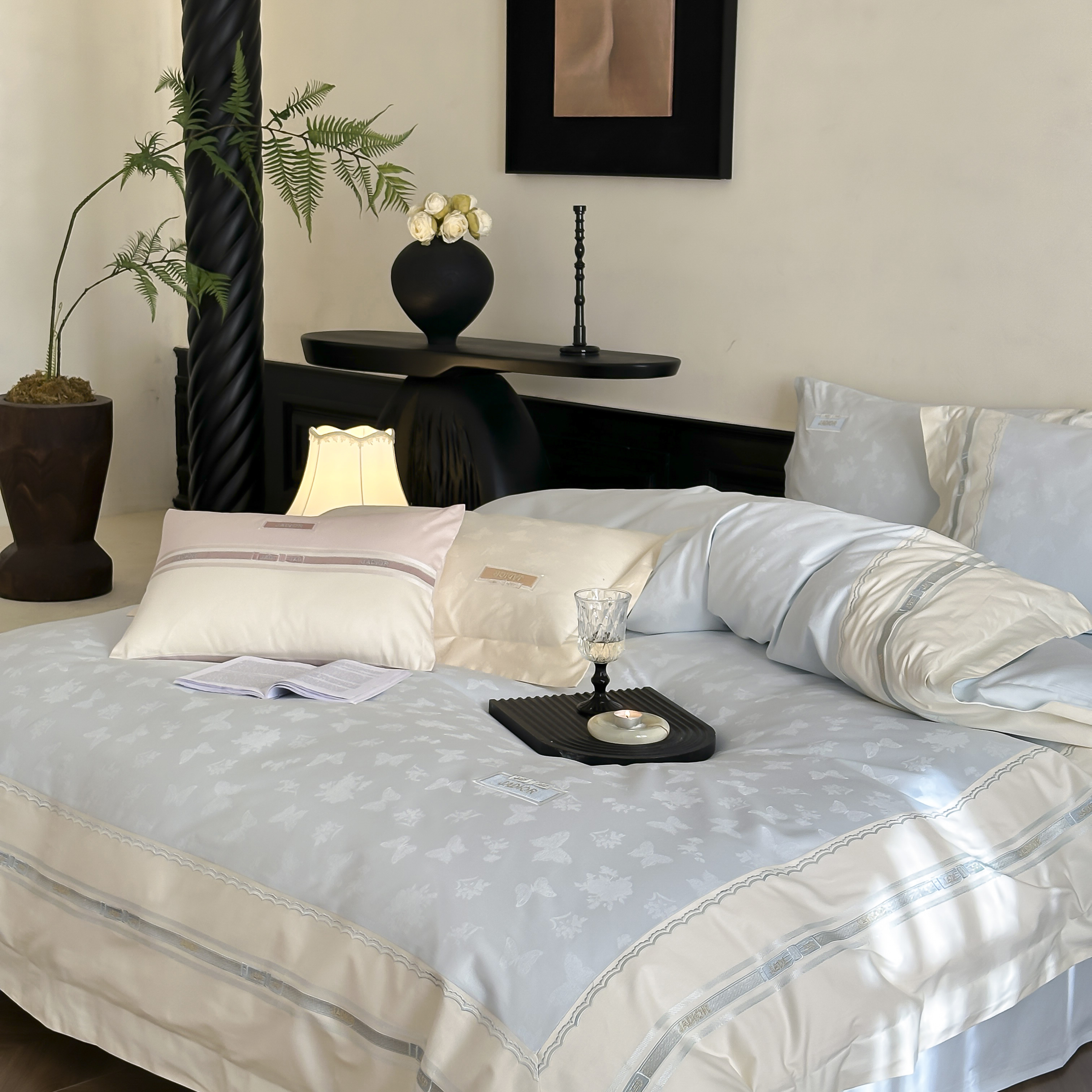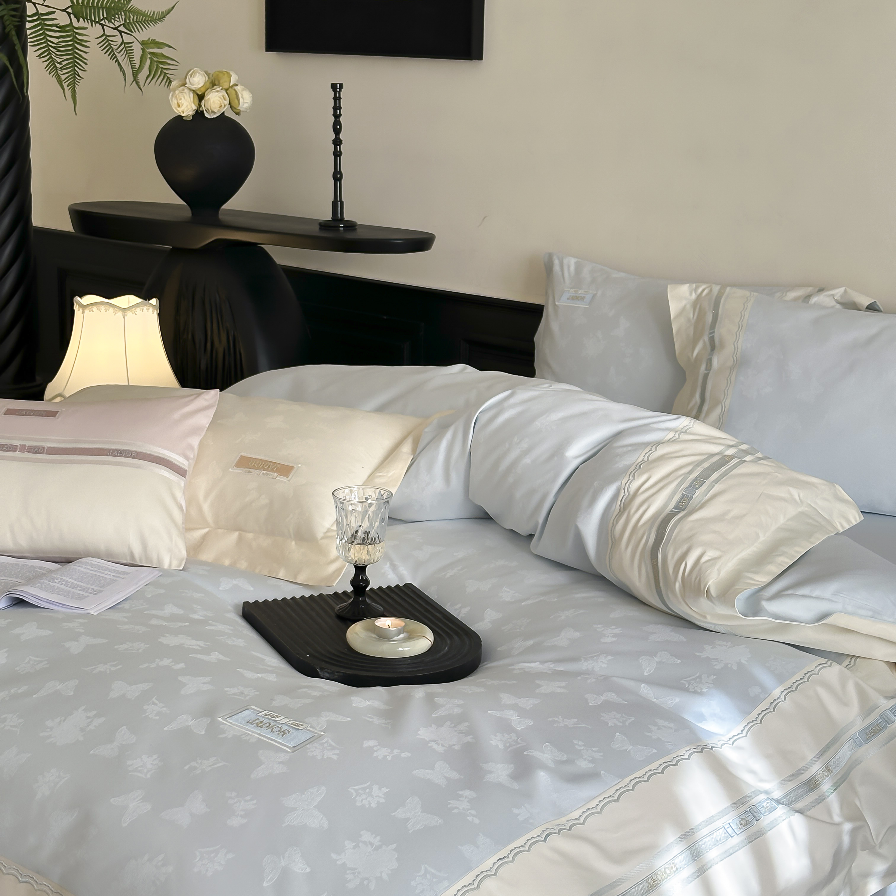 当前位置: 91家纺网 > 商品网购 > 床品套件 > 四件套 > 提花四件套 > (总)初拾 2025新款100s全棉小法式提花绣花四件套-舒芙蕾