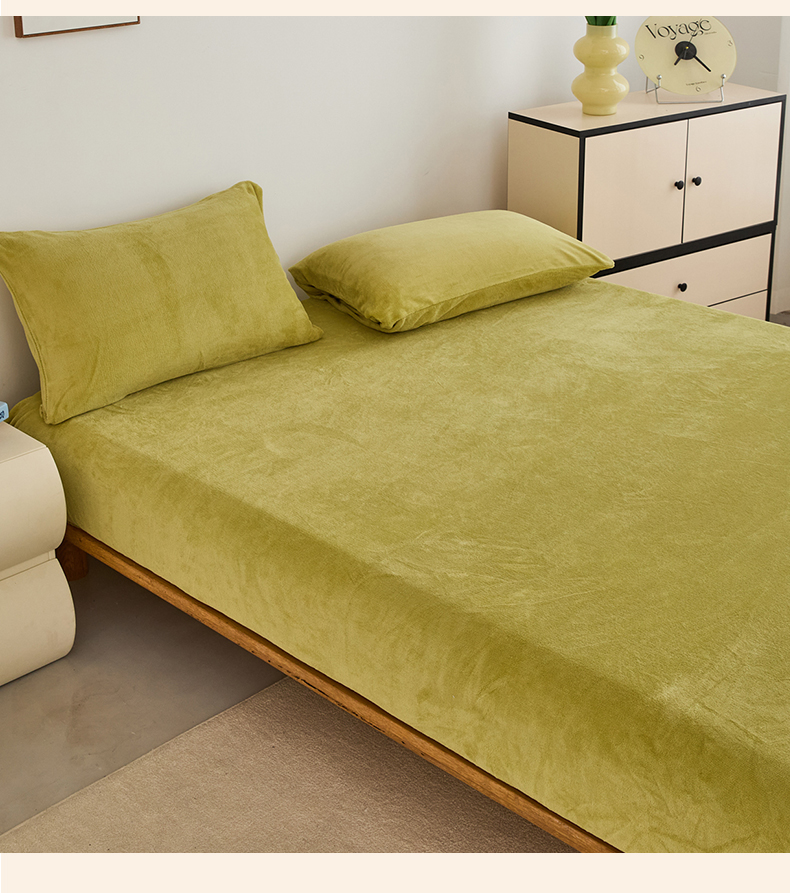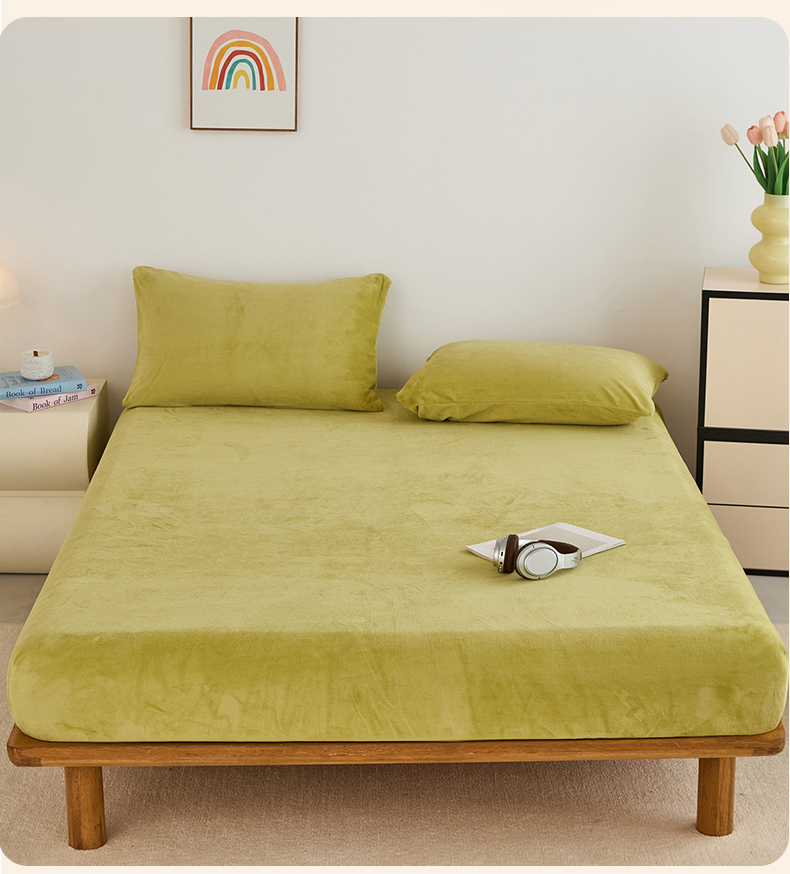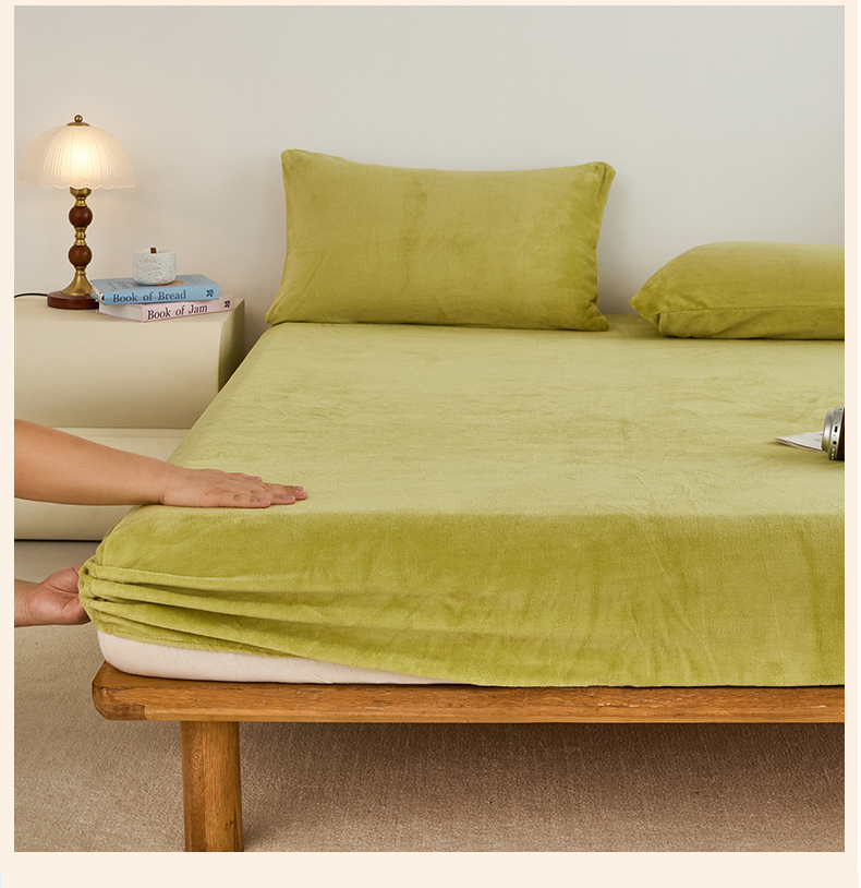 曼町家居 2025新款高克重柔软牛奶绒床笠单床笠床笠单件 抹茶绿