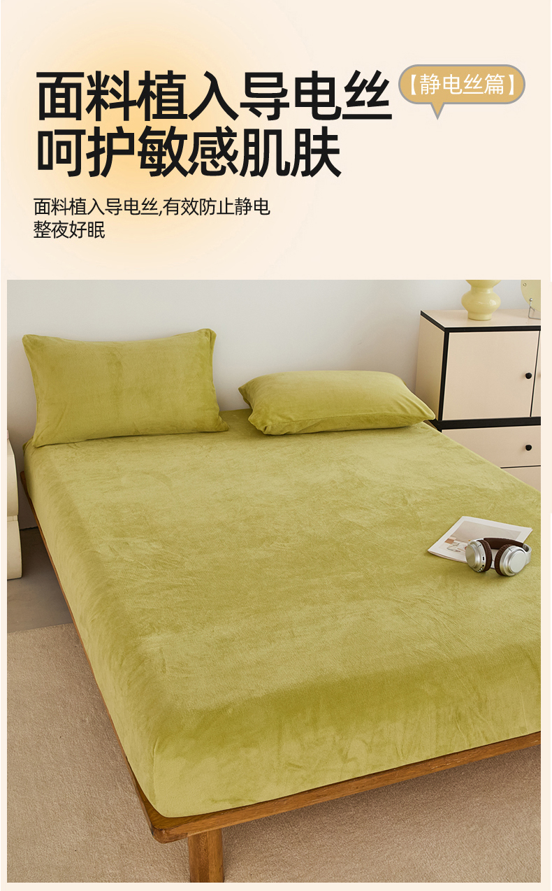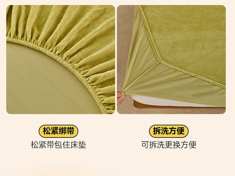 • 91家纺网 家纺一手货源 找家纺 曼町家居 2025新款高克重柔软牛奶绒床笠单床笠床笠单件 抹茶绿