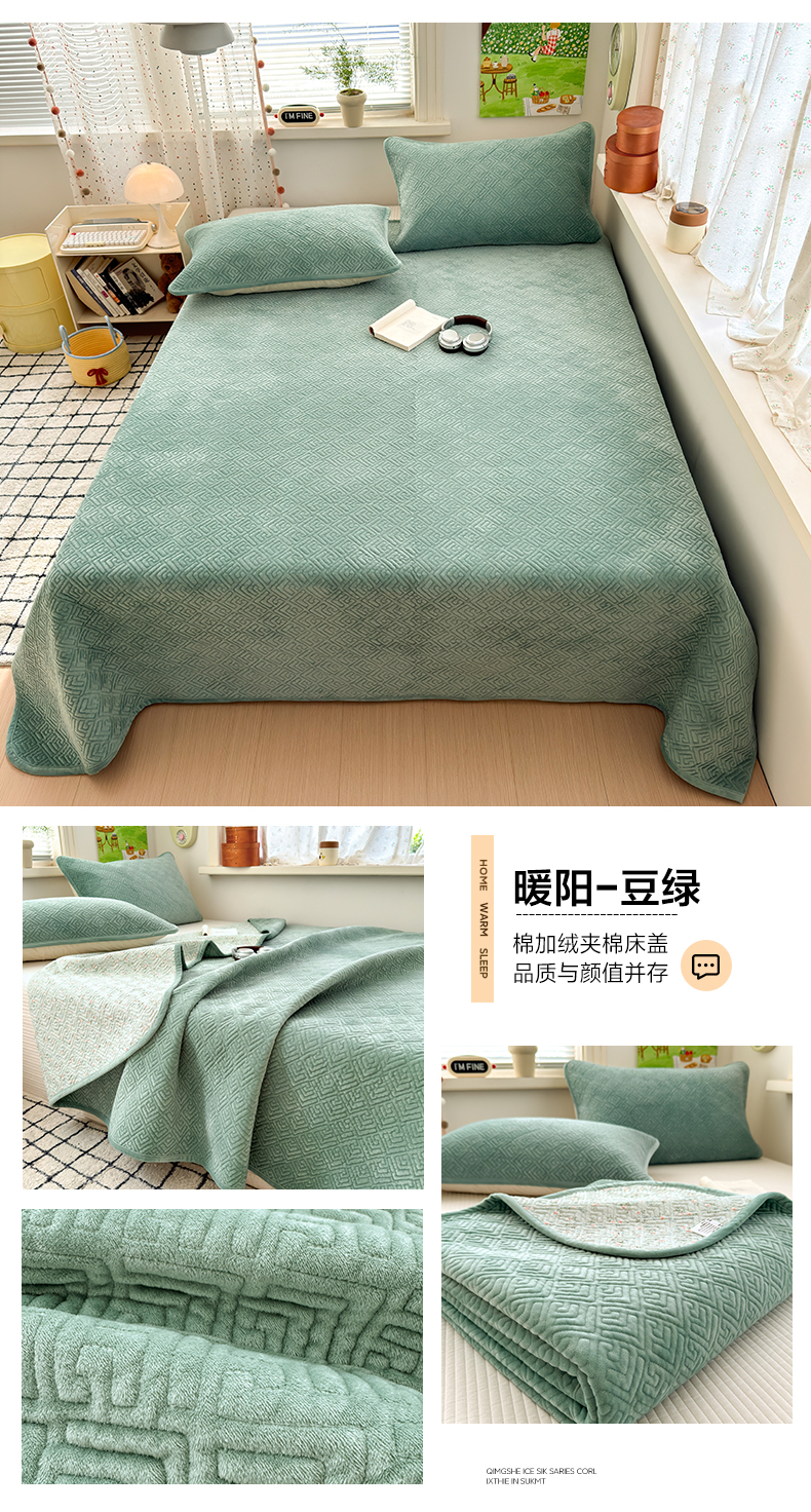 (总)美优兰 2025新款棉加绒高温砂洗夹棉单床盖 床盖单件,组合图仅供展示不可下单,暖阳-草绿,暖阳-豆绿,暖阳-粉黛,暖阳-灰色,暖阳-蓝色,暖阳-米黄,暖阳-米驼,暖阳-紫薯