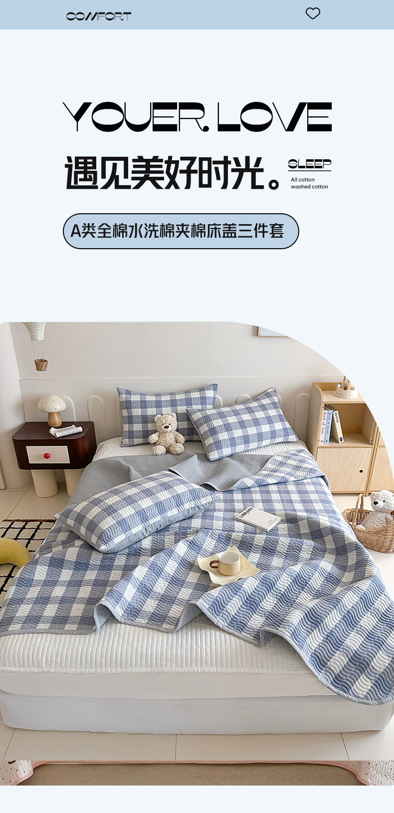 (总)乐野家居 2025新款A类全棉水洗棉夹棉床盖三件套