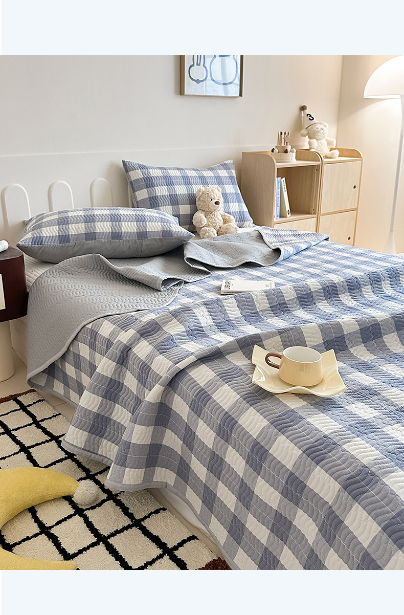 乐野家居 2025新款A类全棉水洗棉夹棉床盖三件套 灰中格