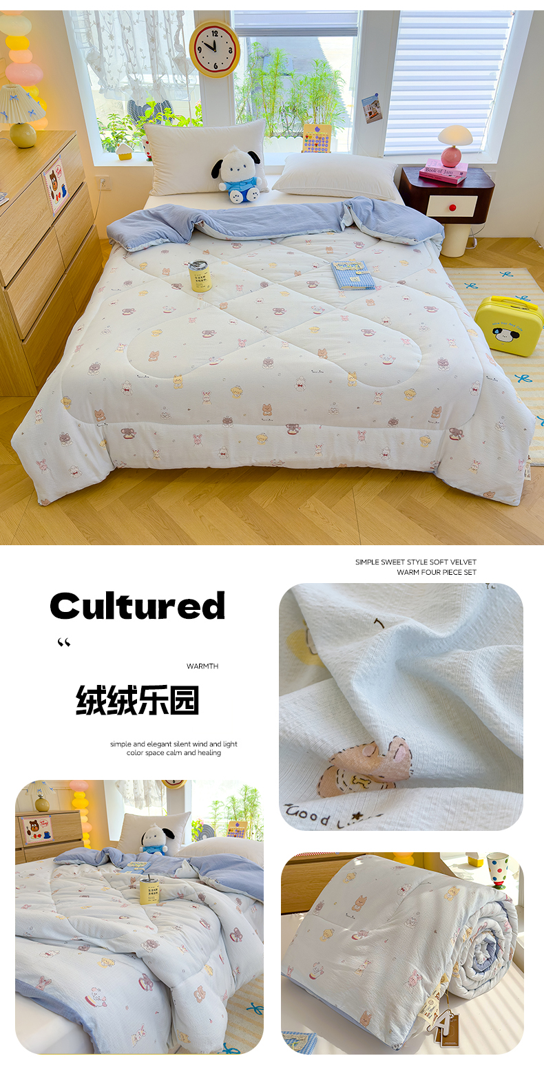 • 91家纺网 家纺一手货源 找家纺 (总)弗苓家纺 2025新款糯叽叽ins风双层纱水洗棉冬被被子被芯,绚颜,汪汪队,蜡笔小新,春晓,垂耳免,樱桃,粉黛,安妮兔,西高地,初恋,海盐-蓝,海盐-米,米奇妙妙,梦蝶,郁金香,组合图仅供参考不可下单