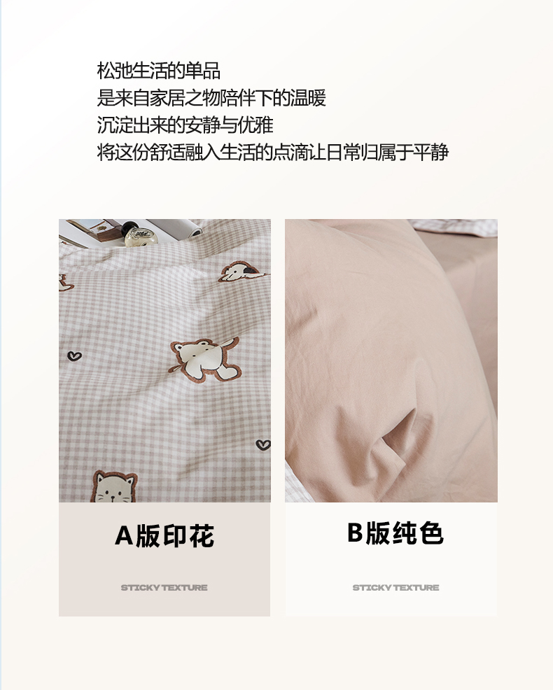 当前位置: 91家纺网 > 商品网购 > 床品套件 > 四件套 > 全棉普通四件套 > XIWEN-希文家纺 2025秋冬新款全棉纯棉生态磨毛印花四件套 萌趣卡其