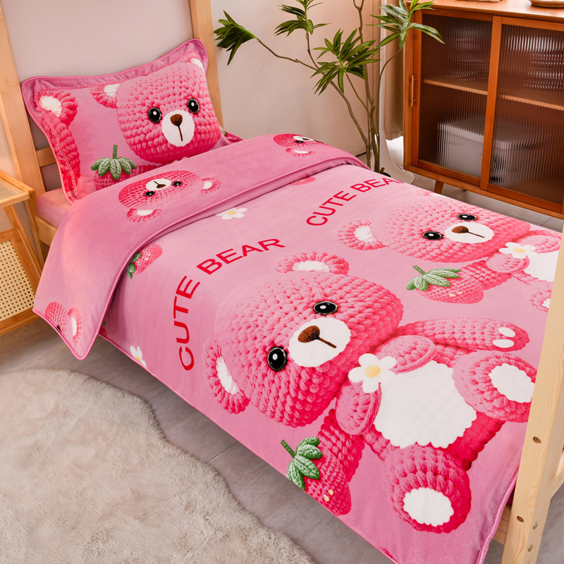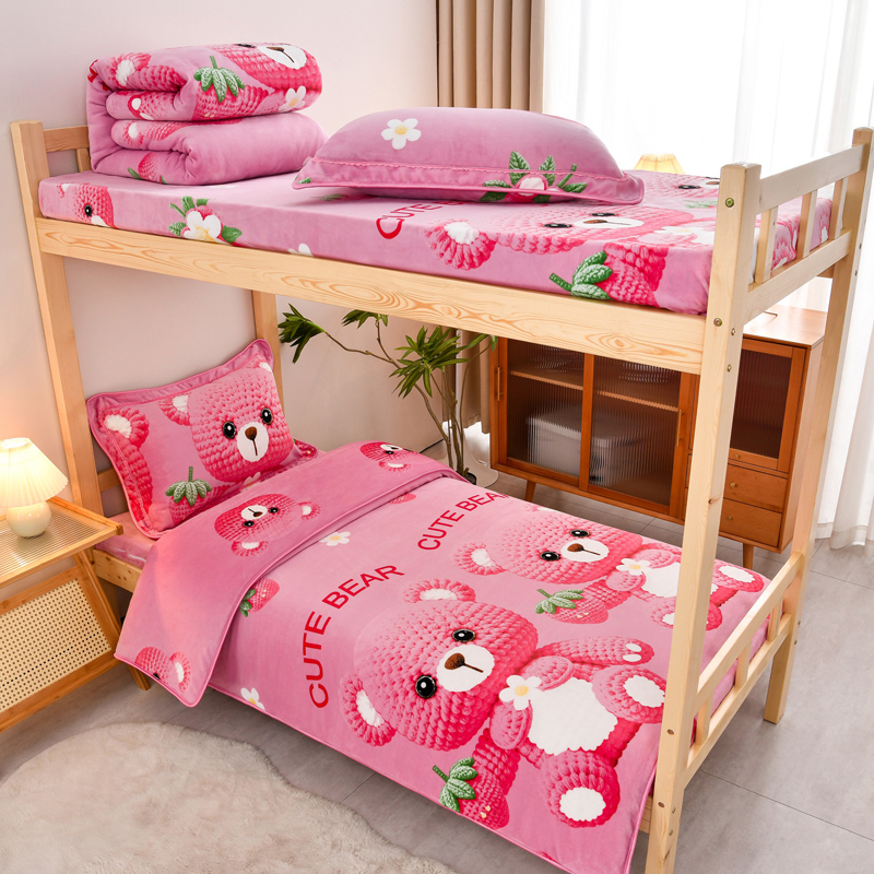 当前位置: 91家纺网 > 商品网购 > 床品套件 > 三件套 > 居尚2025直播爆款高克重印花牛奶绒法莱绒学生三件套 草莓熊