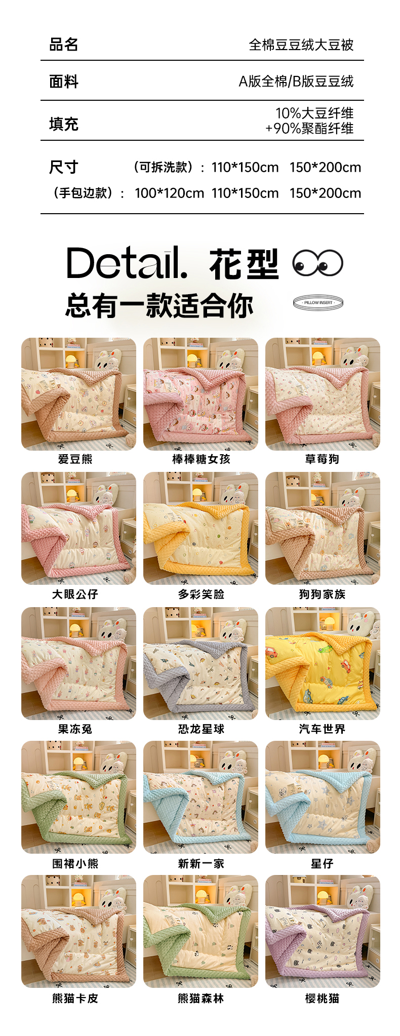 (总)梦依依 2025新款全棉小清新卡通印花系列儿童豆豆被子被芯,一体款-爱豆熊,一体款-棒棒糖女孩,一体款-草莓狗,一体款-大眼公仔,一体款-多彩笑脸,一体款-狗狗家族,一体款-果冻兔,一体款-恐龙星球,一体款-汽车世界,一体款-围裙小熊,一体款-新新一家,一体款-星仔,一体款-熊猫卡皮,一体款-熊猫森林,一体款-樱桃猫,可拆卸款-爱豆熊,可拆卸款-棒棒糖女孩,可拆卸款-草莓狗,可拆卸款-大眼公仔,可拆卸款-多彩笑脸,可拆卸款-狗狗家族,可拆卸款-果冻兔,可拆卸款-恐龙星球,可拆卸款-汽车世界,可拆卸款-围裙小熊,可拆卸款-新新一家,可拆卸款-星仔,可拆卸款-熊猫卡皮,可拆卸款-熊猫森林,可拆卸款-樱桃猫
