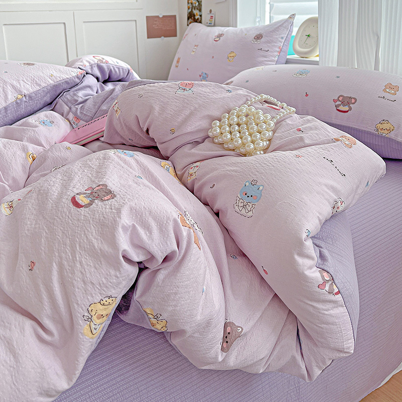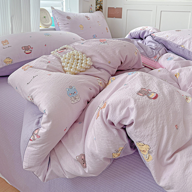 (总)一比一家纺 2026新款古法水洗仿棉云感纱A类四件套,知秋,白兰地,彩波波,草莓点点,格纹狗,嗨皮狗,赫莲娜,花千朵,花絮,酱果,蓝小格,莉莉安,梦幻灰,南瓜果果,葡萄,浅梦,森屿,疏影,甜心草莓,甜心喵,条纹狗,童趣,小黄花,小木马,小时光,小幸运,修修狗,薰衣草,灰樱桃,樱桃熊,鱼多多,组合图仅做展示不可下单