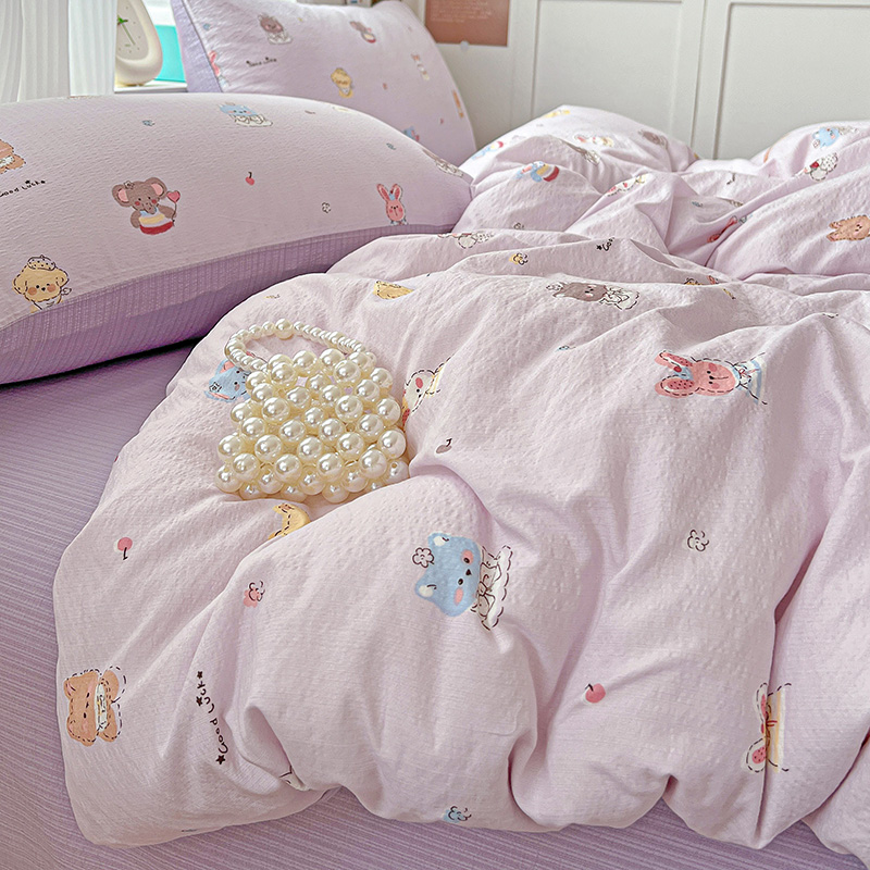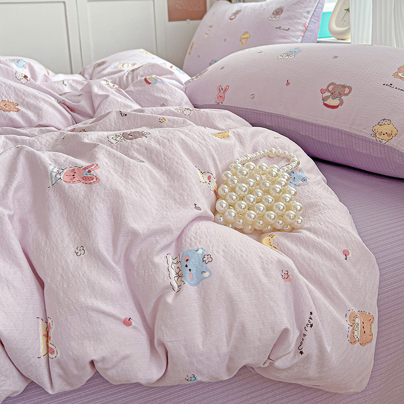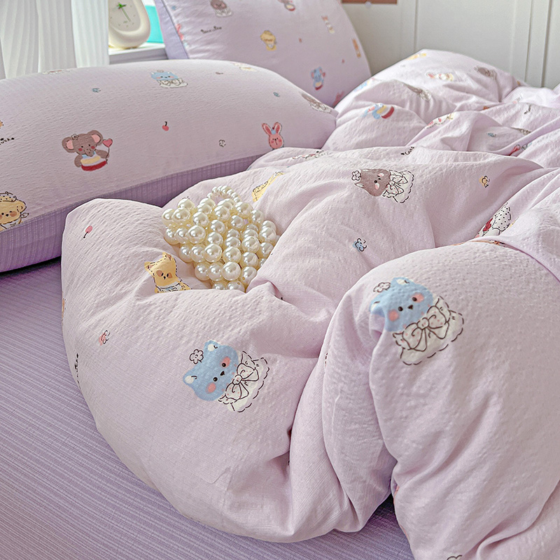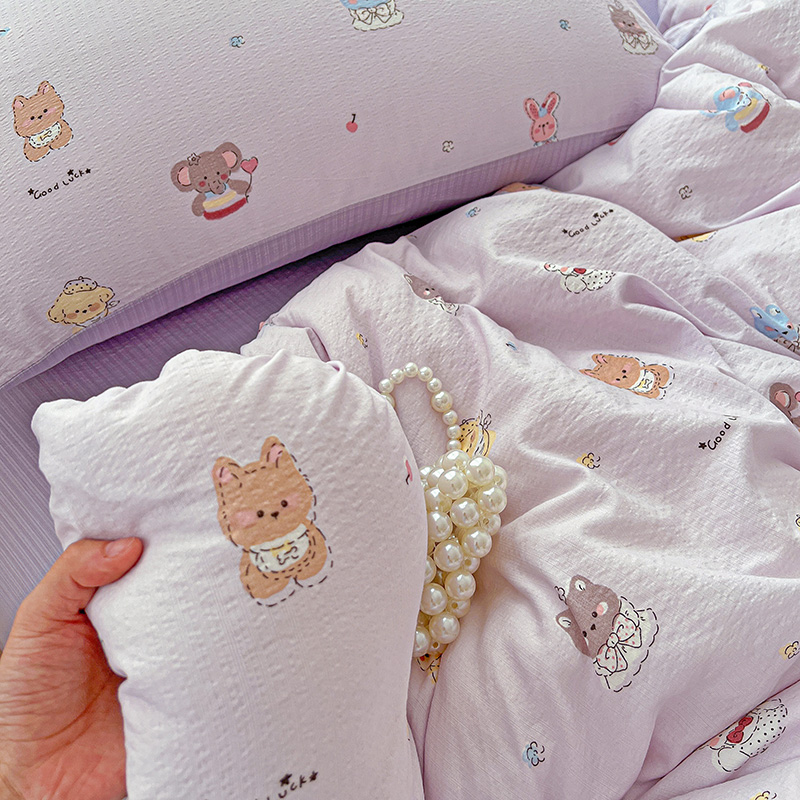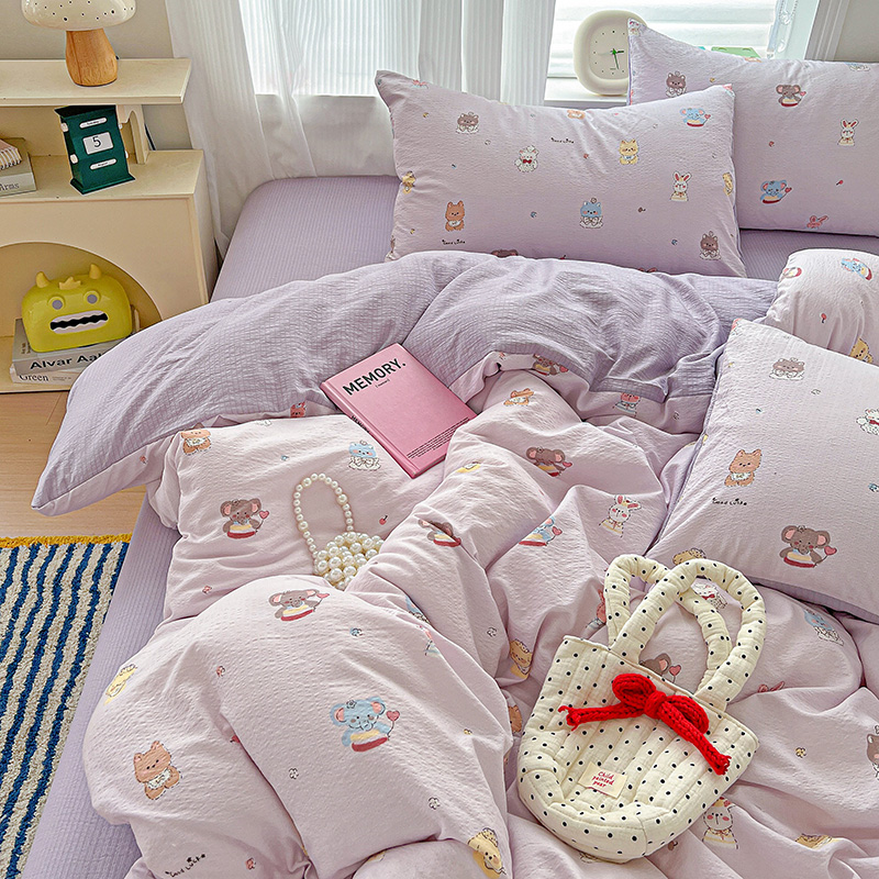 商品名称:一比一 2026新款云感皱皱双层纱四件套-简单款 萌宠宝贝