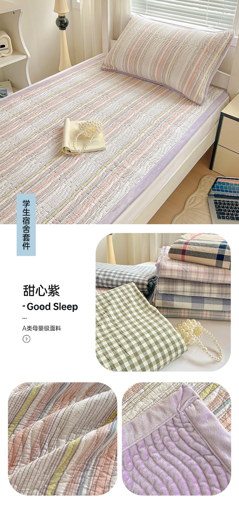 • 91家纺网 家纺一手货源 找家纺 乐野家居 2025新款开学季 A类全棉水洗棉+宝宝绒学生床盖三件套(多功能被套) 小苏格兰