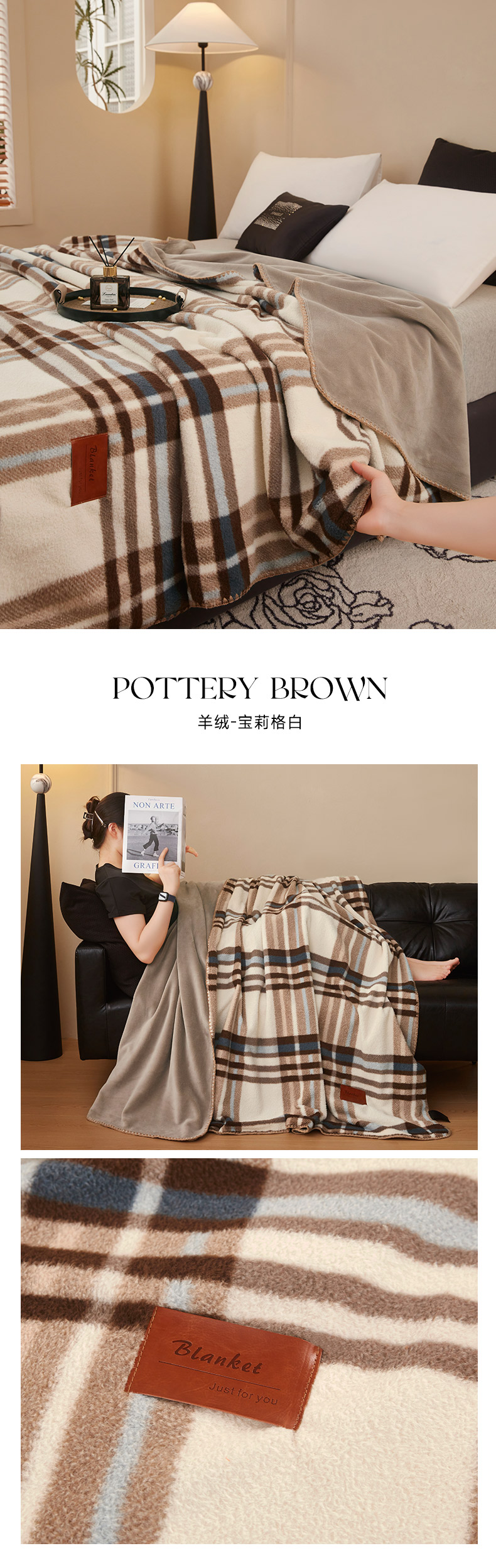 悦织湾家纺 2025新款双层仿羊绒毛毯羊驼绒盖毯绵仿羊绒毯子轻奢印花被子毯子加厚保暖冬季跨境专供 仿羊绒-宝莉棕白