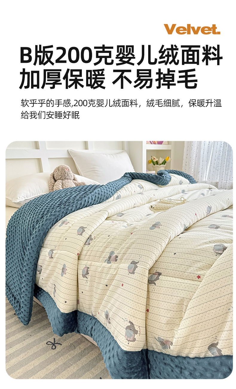 (总)宜梦家居 2025新款獭兔绒三层夹棉加厚豆豆棉被子被芯,抱抱熊,蛋糕猫,蝴蝶,花草狗,卡皮巴拉,蓝狗,蓝色动物,美乐蒂,奶牛,南瓜,星月,熊猫,郁金香,紫花