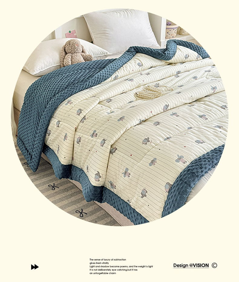(总)宜梦家居【需要买家秀请联系老板】 2025新款双面纯棉夹层新疆棉花高温砂洗全棉床盖,爱达拉蓝,爱达拉粉,呆萌熊咖,迪克奥莱,美味樱桃,清茶小熊,踏春小兔,甜蜜小兔,仙草兔,银杉之梦