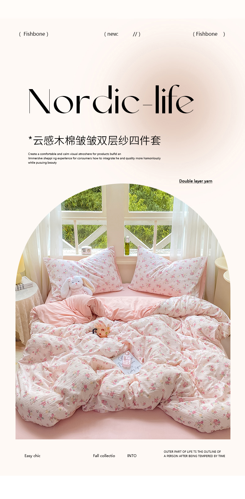 当前位置: 91家纺网 > 商品网购 > 床品套件 > 四件套 > 双层纱四件套 > 朵朵家纺 2025新款云感提花双层纱印花四件套 锦上添花