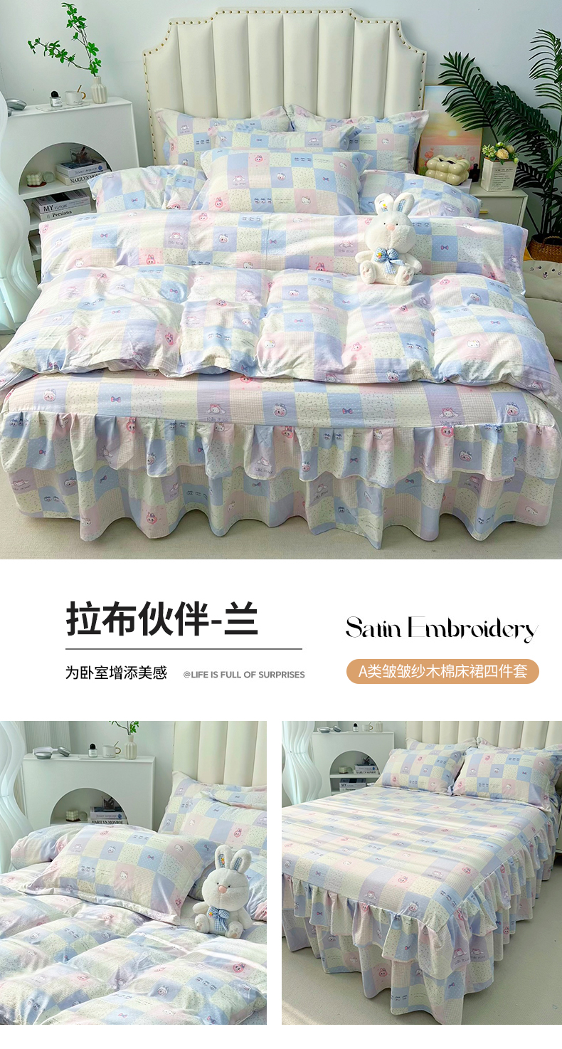 (总)九诺家纺 2025秋冬新款加厚皱皱纱床裙四件套双花边工艺床裙,一见倾心,快乐伙伴,西西莉亚,圣代甜喵-粉,少女情结,青栀,欧若拉,南笙假日,浪漫心动,拉布伙伴-兰,拉布伙伴-粉,奶油布丁,可可西里,可爱南瓜,公主日记,海岛青春,星梦乐园,意式豹纹