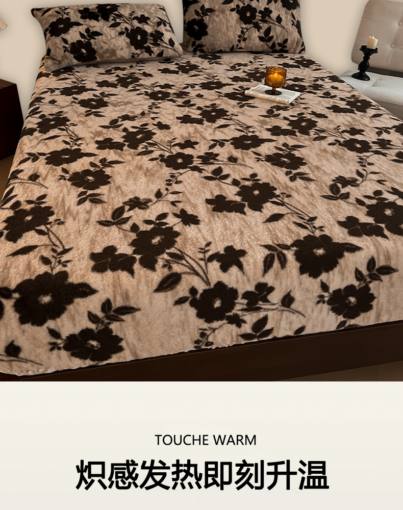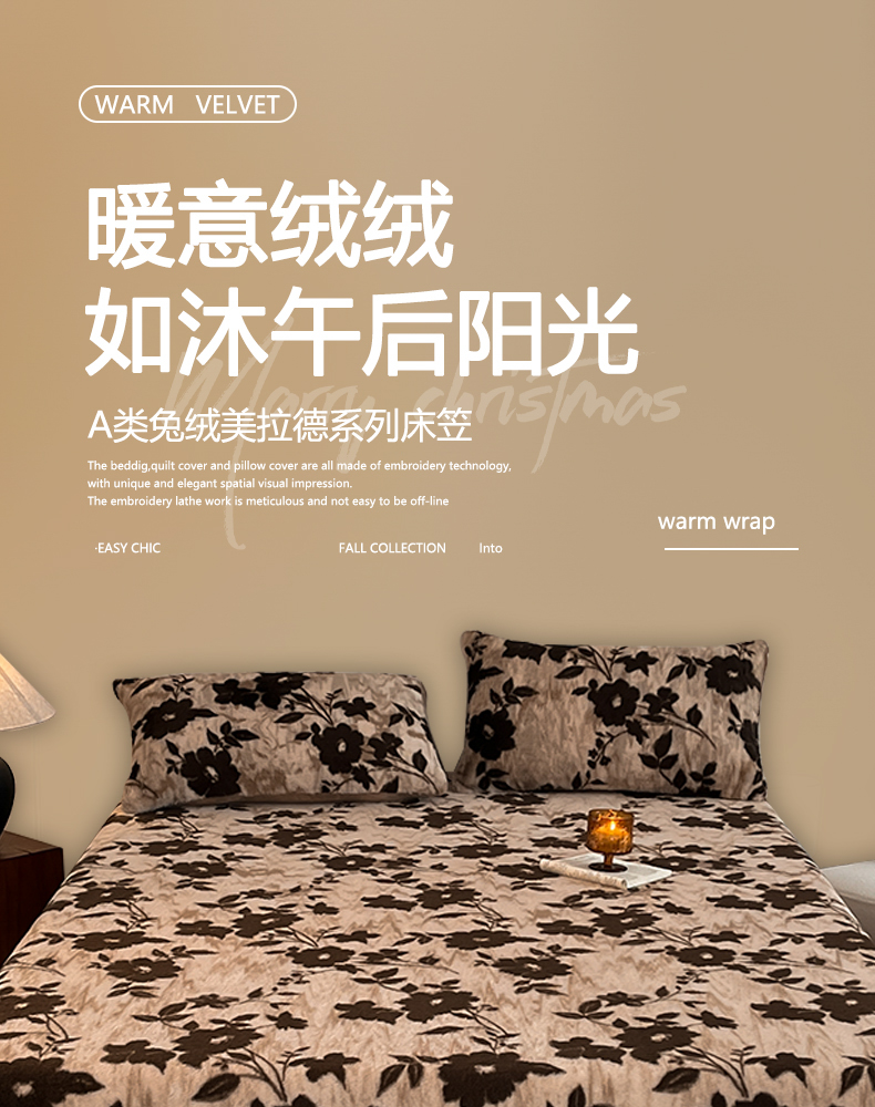 子曰 2025新款加厚美拉德兔绒床笠 美拉德-花语