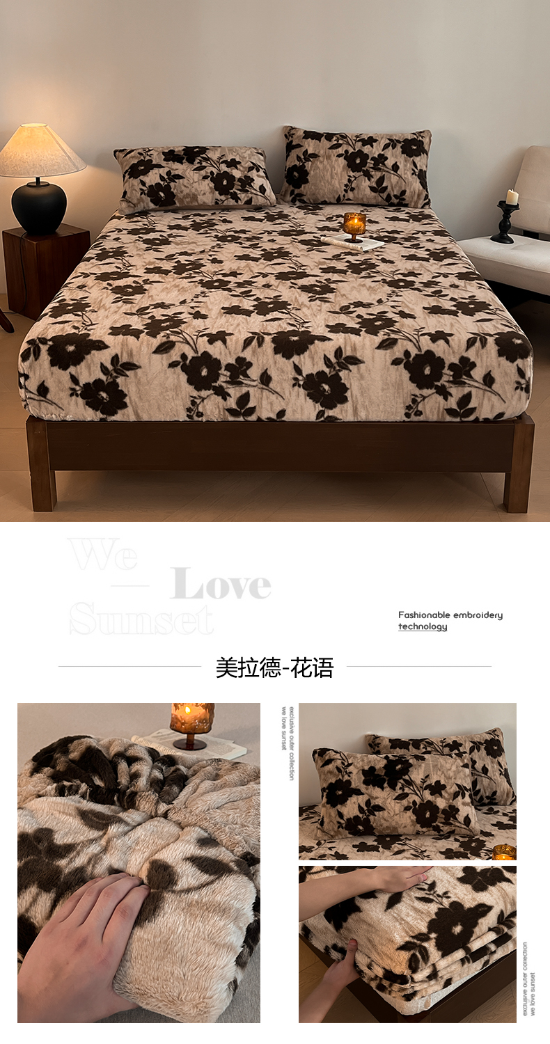 • 91家纺网 家纺一手货源 找家纺 子曰 2025新款加厚美拉德兔绒床笠 美拉德-花语