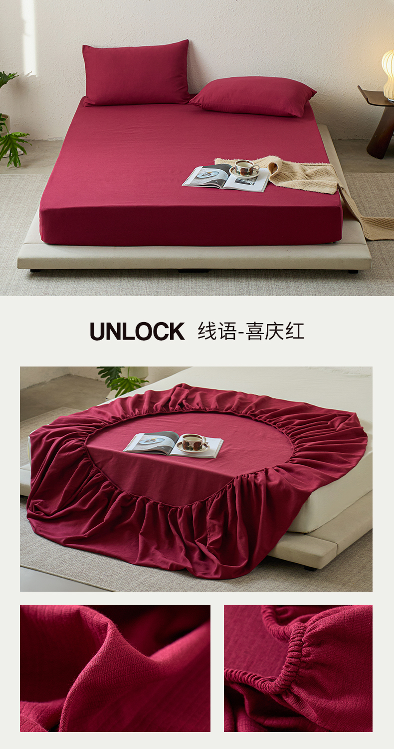 商品名称:千朵森 2025新款全棉纯棉提花磨毛床笠单品床笠单件单床笠 线语—喜庆红