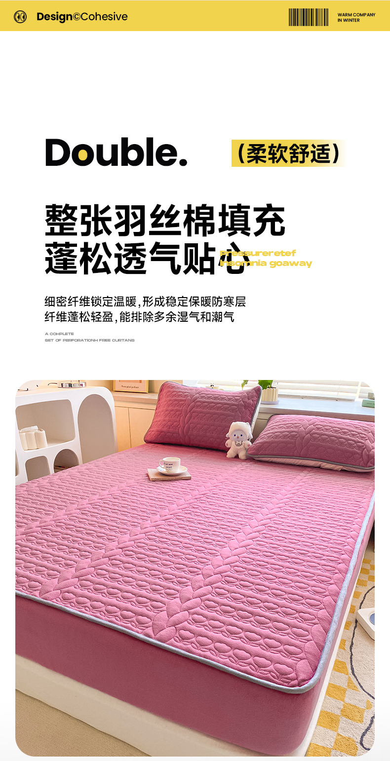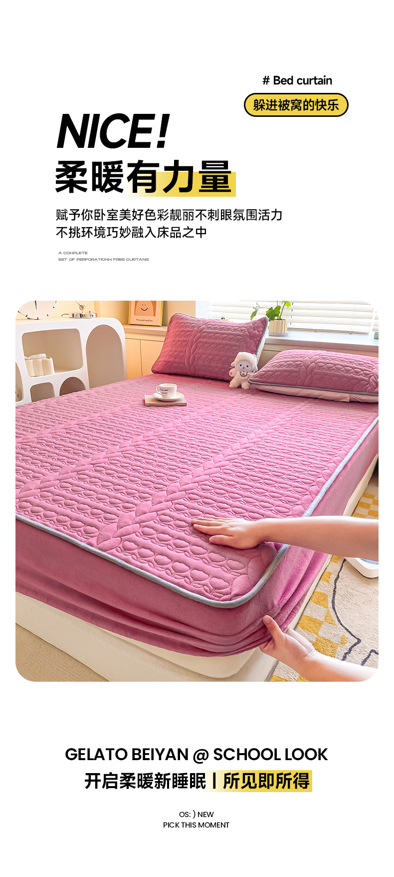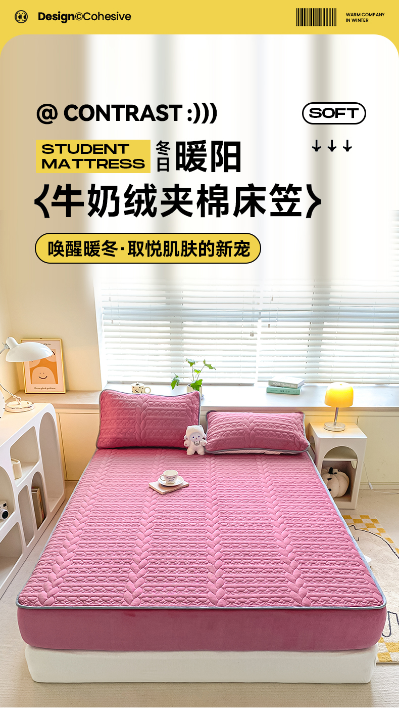 • 91家纺网 家纺一手货源 找家纺 摩妮卡 2025新款牛奶绒夹棉床笠三件套保护床垫 砖红