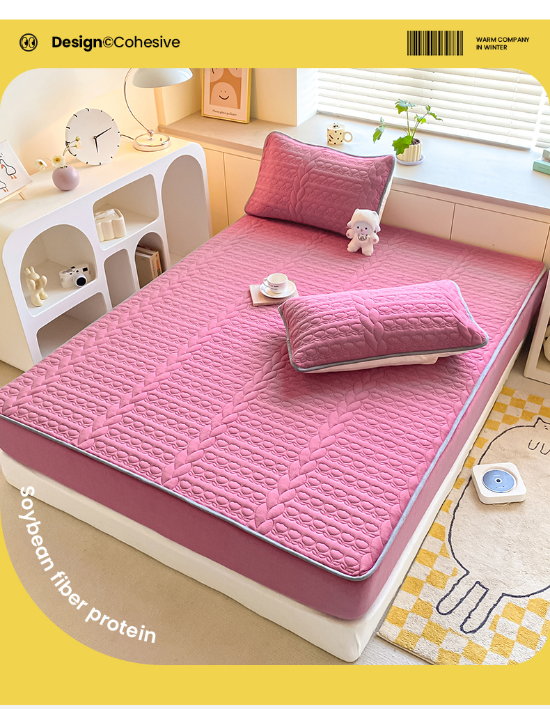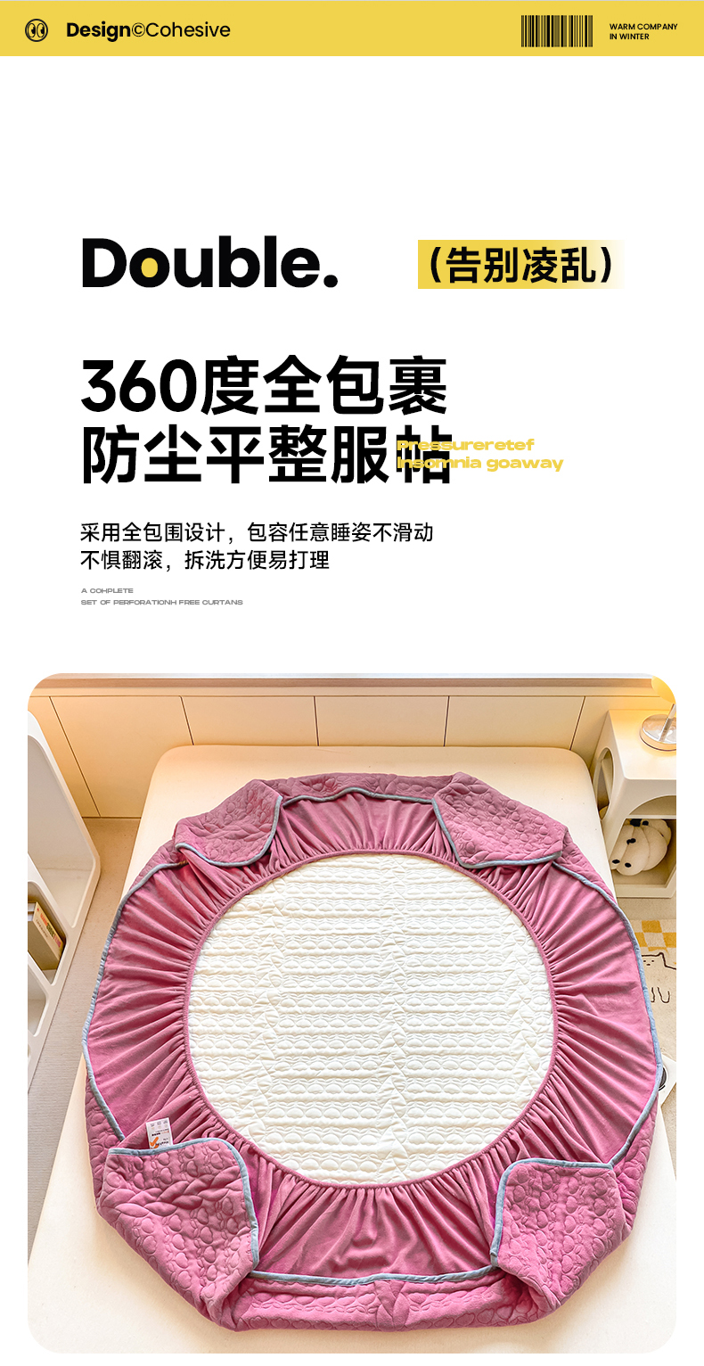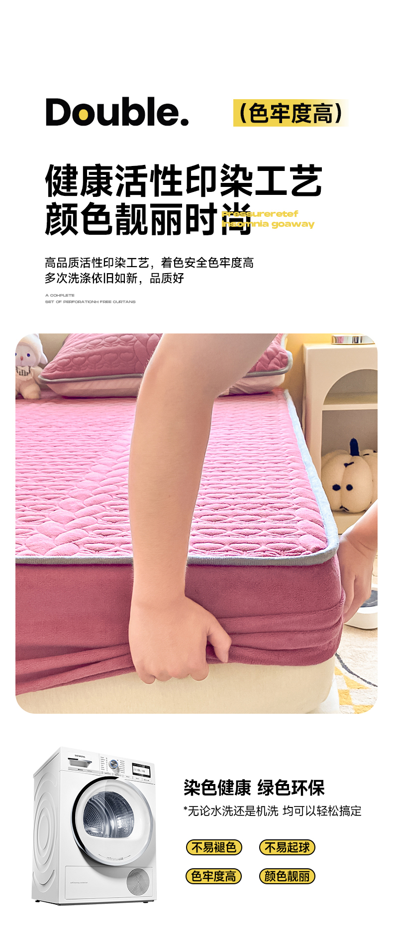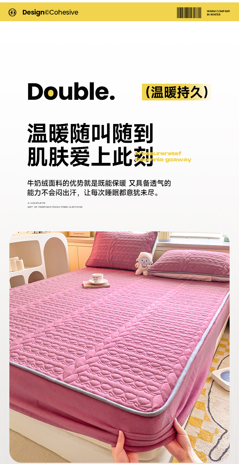 • 91家纺网 家纺一手货源 找家纺 摩妮卡 2025新款牛奶绒夹棉床笠三件套保护床垫 砖红