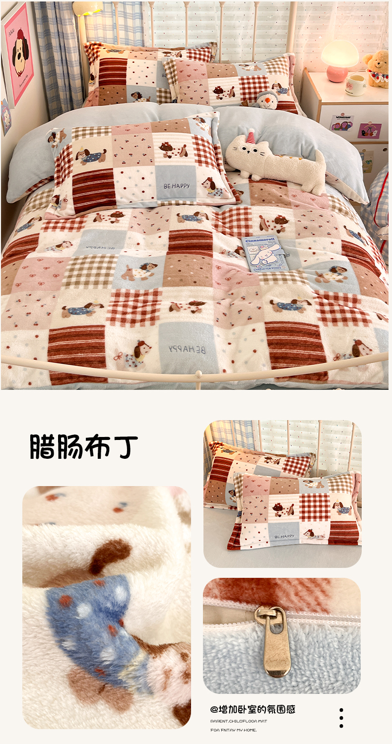 当前位置: 91家纺网 > 商品网购 > 床品套件 > 四件套 > 牛奶绒四件套 > 川悦生活 2025新款加厚牛奶绒印花四件套 腊肠布丁