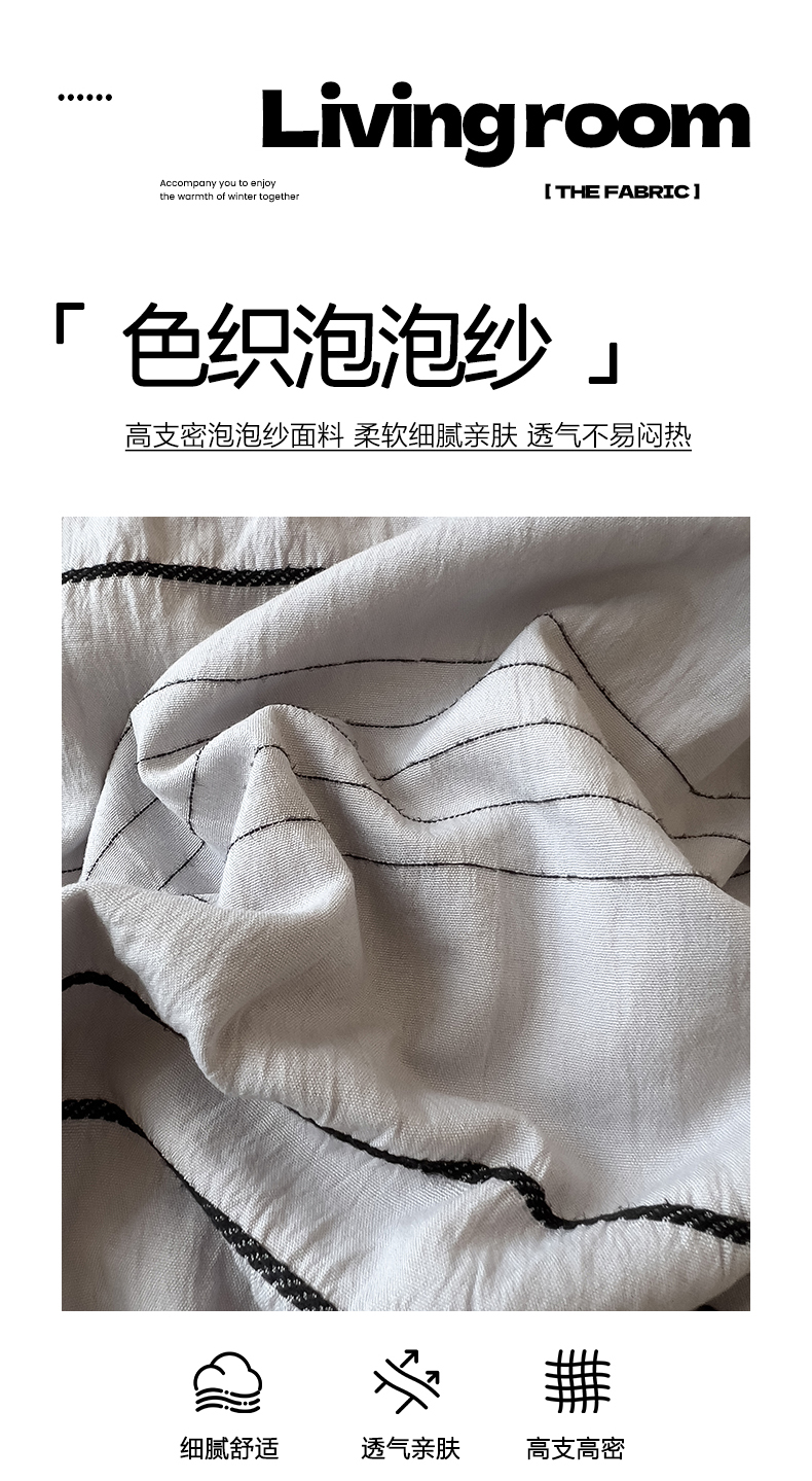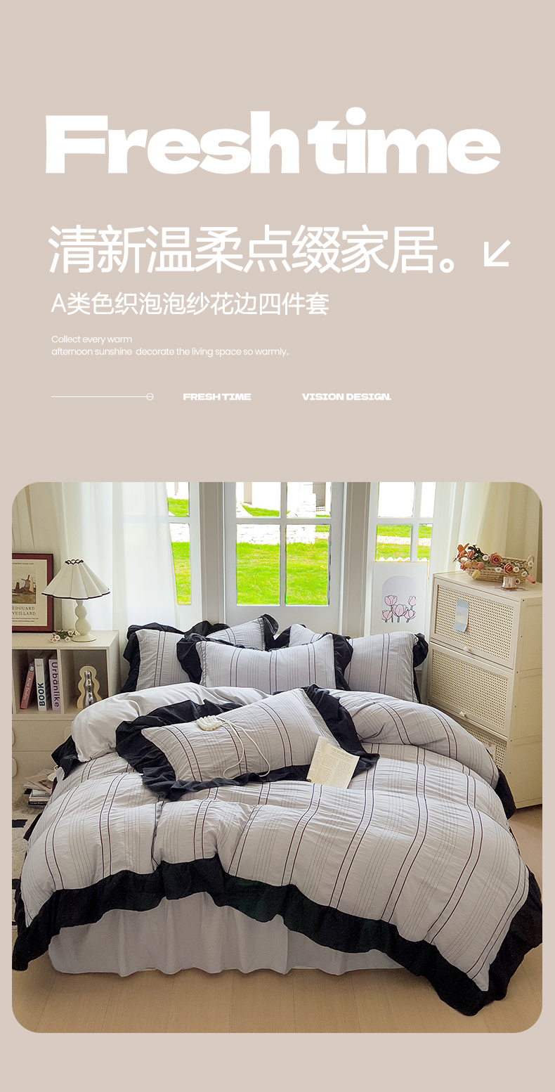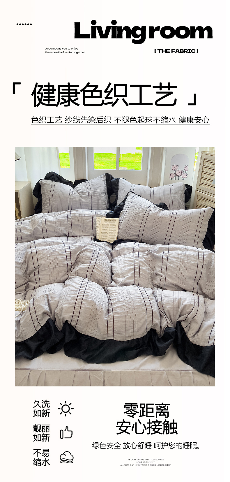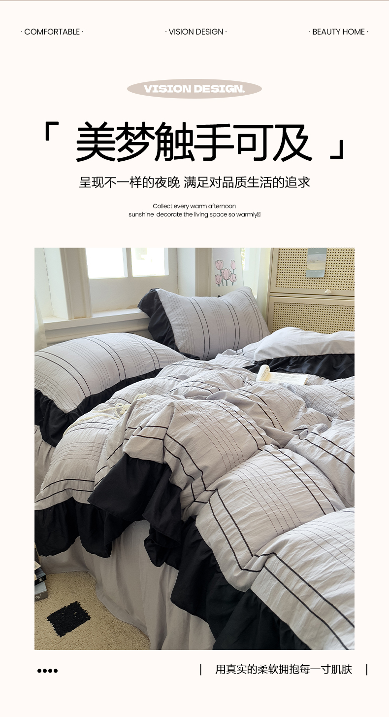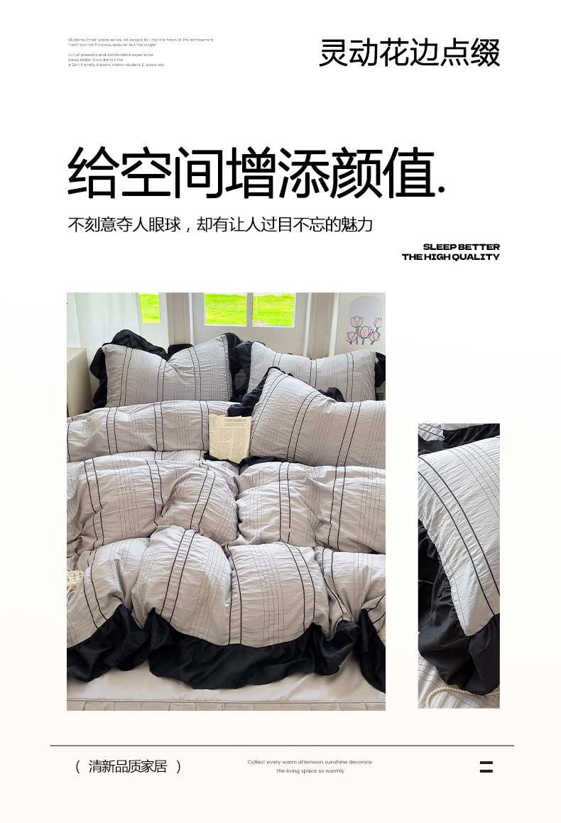 当前位置: 91家纺网 > 商品网购 > 床品套件 > 四件套 > 化纤普通四件套 > 优卡迪家纺馆 2025新款色织泡泡纱花边四件套 月影灰