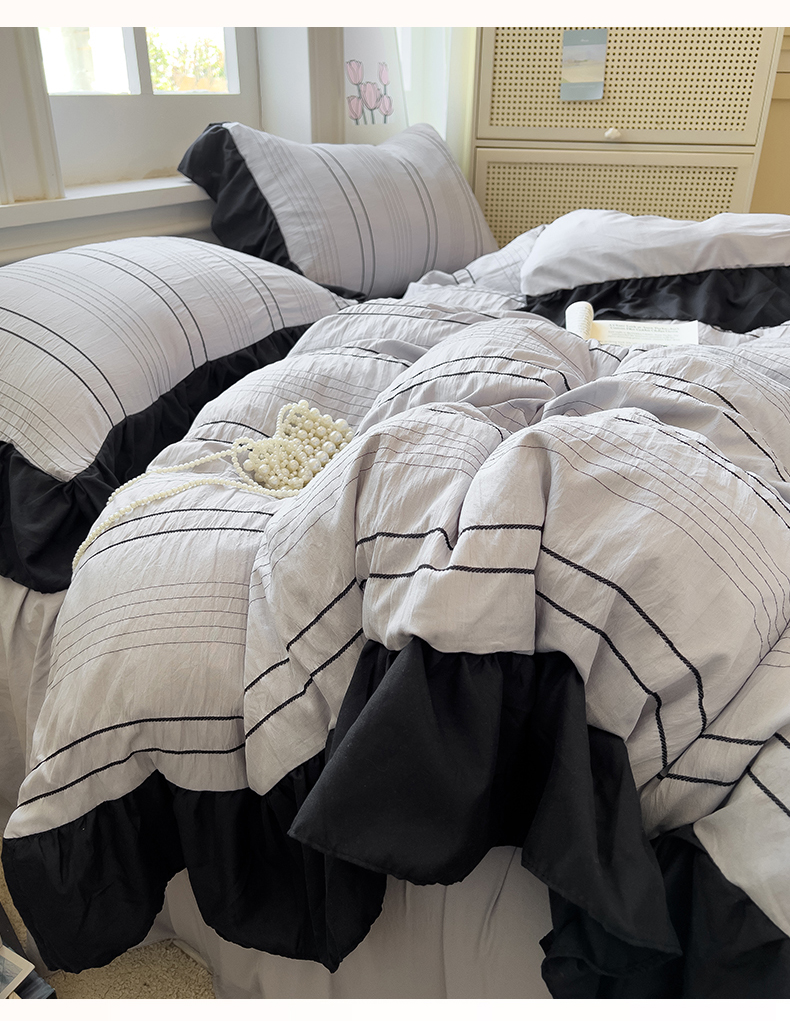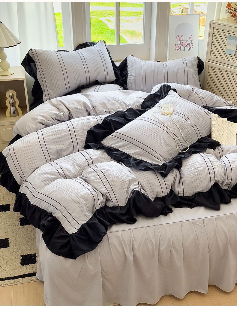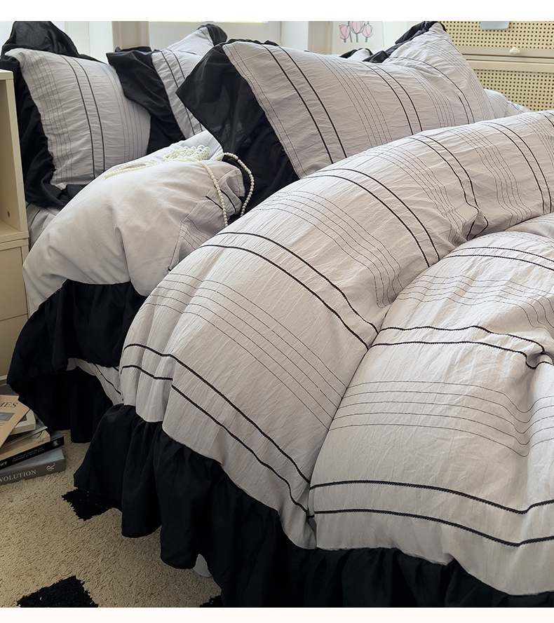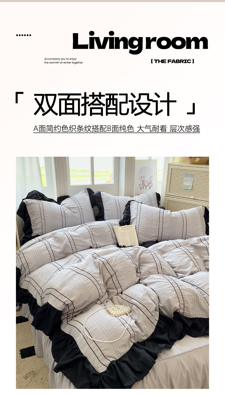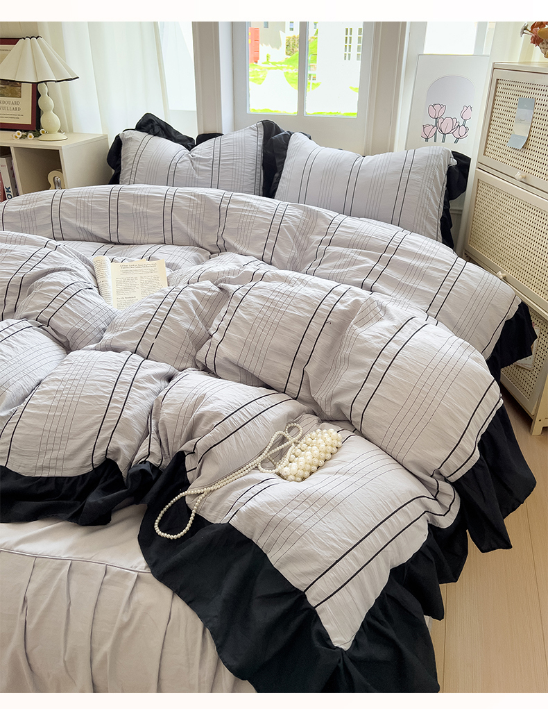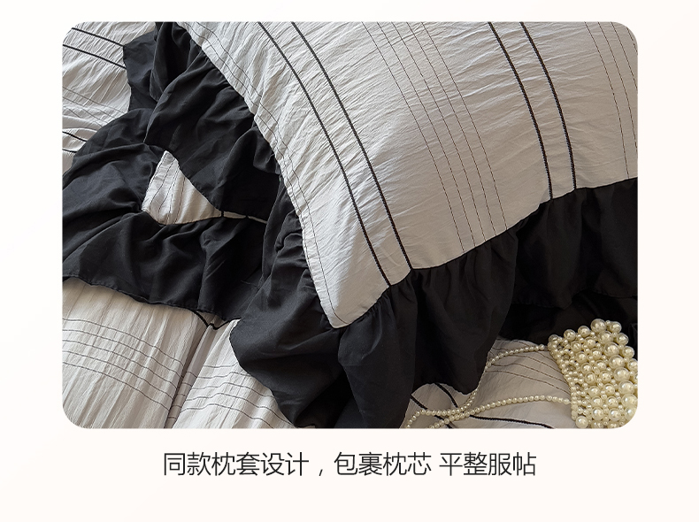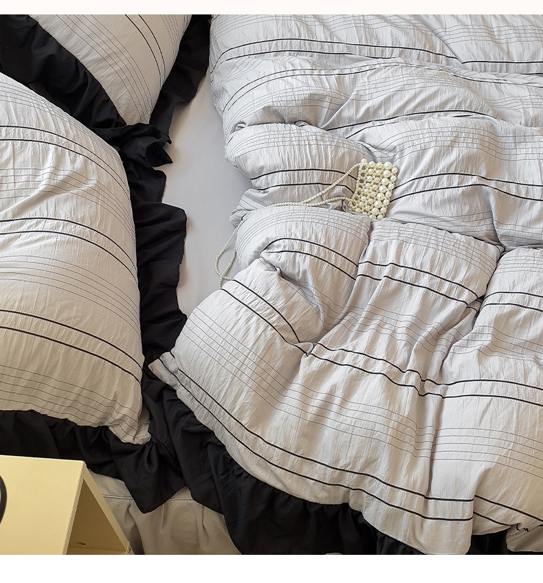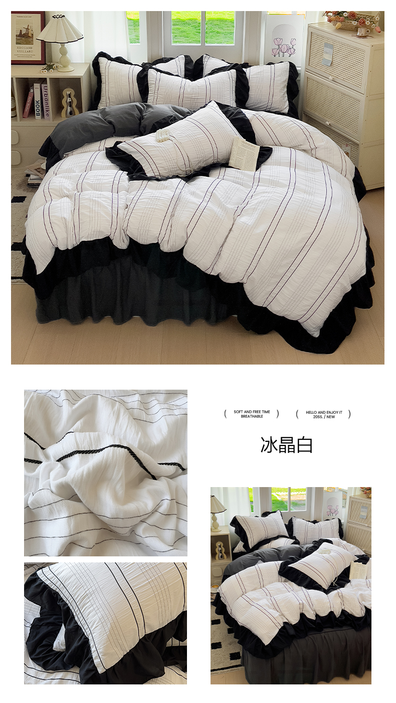 当前位置: 91家纺网 > 商品网购 > 床品套件 > 四件套 > 化纤普通四件套 > 优卡迪家纺馆 2025新款色织泡泡纱花边四件套 月影灰