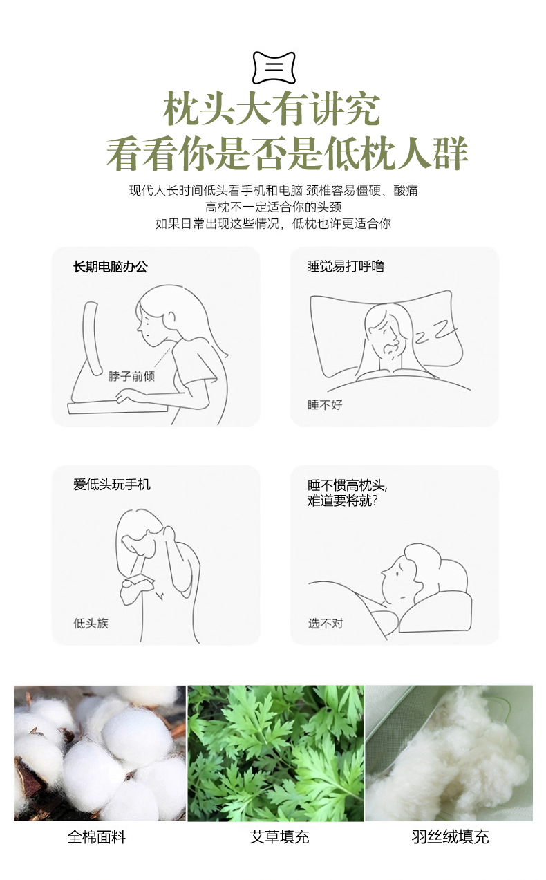 商品名称:(总)金牛枕芯 2025新款小可艾亲子枕全棉艾草棉枕头枕芯儿童少年成人枕头枕芯