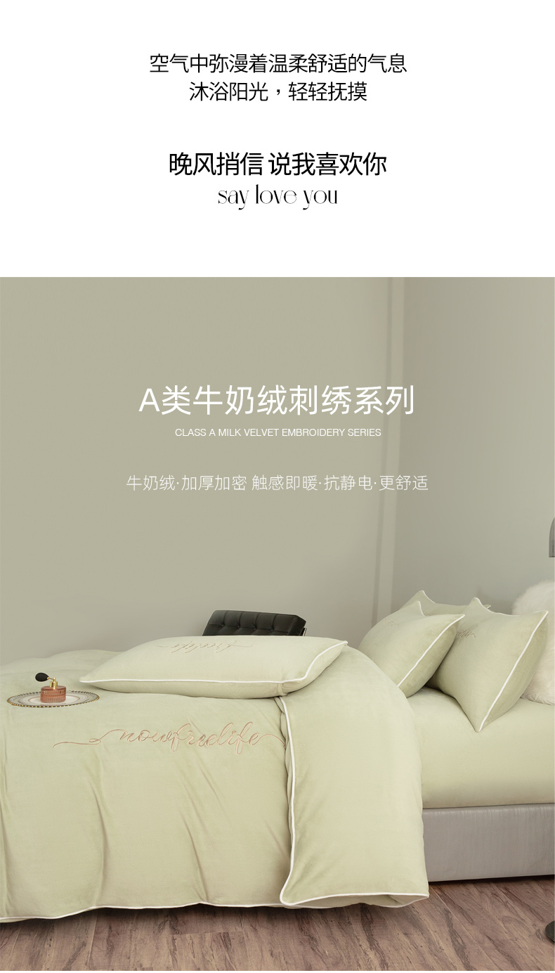 当前位置: 91家纺网 > 商品网购 > 床品套件 > 四件套 > 牛奶绒四件套 > 千朵森 2025新款奢美牛奶绒英文刺绣四件套 奢美-秧绿