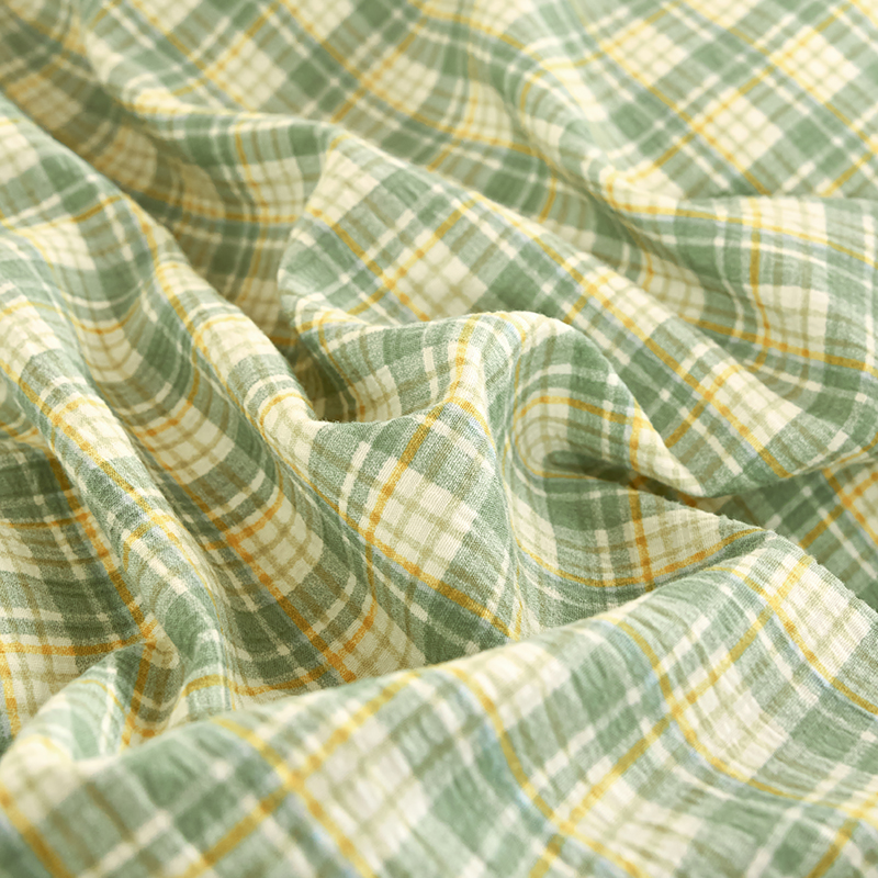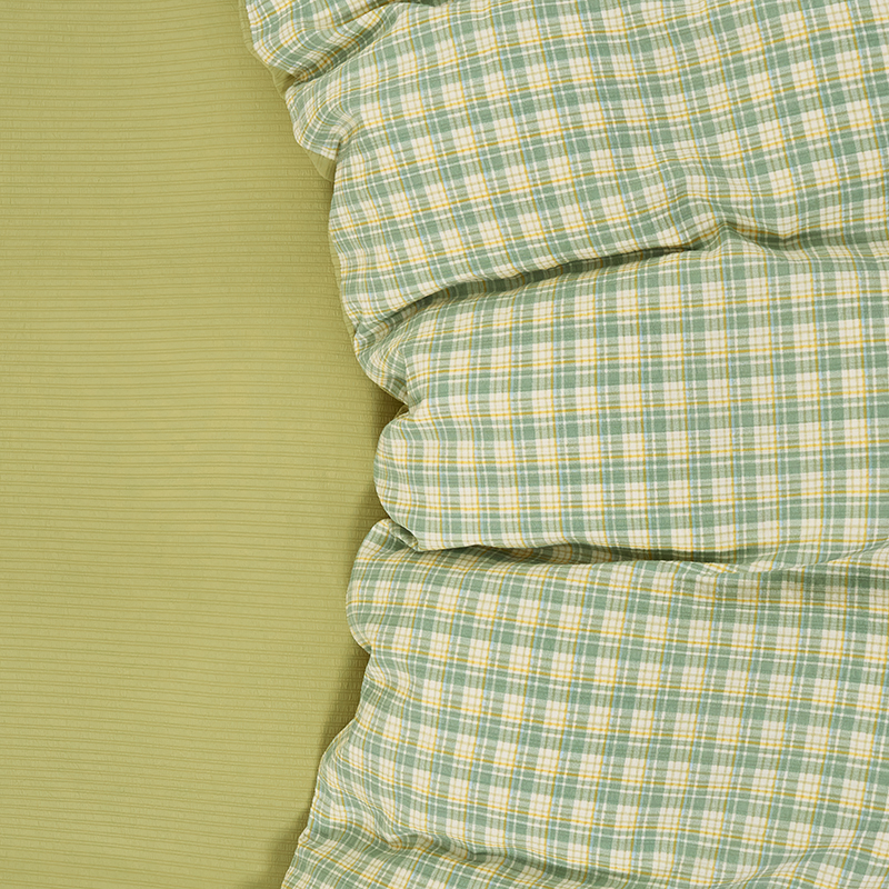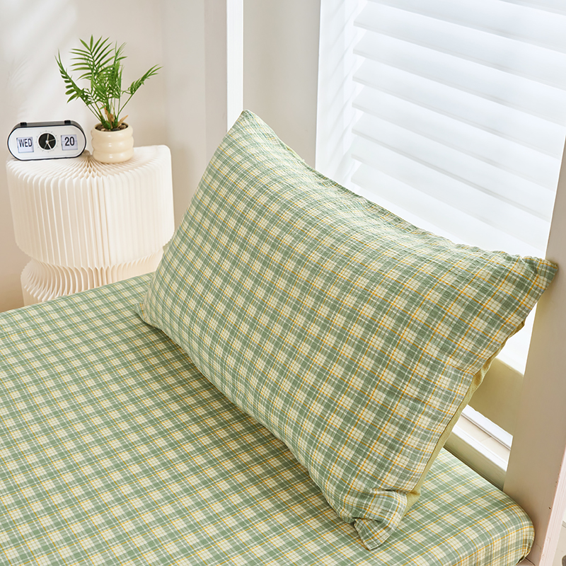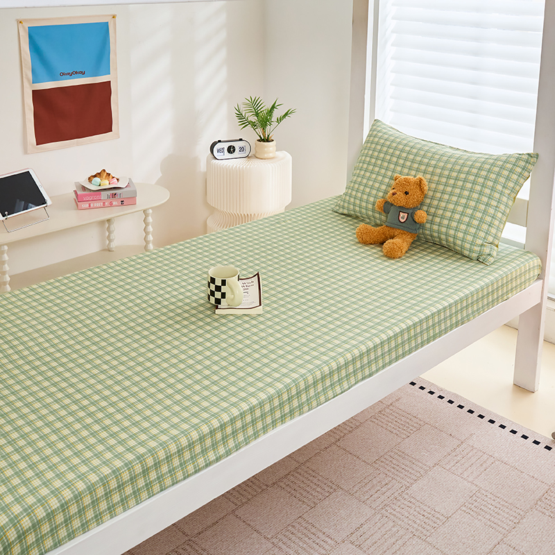 卢赛尔 2025新款简约格子水洗学生季学生宿舍三件套 青柠-绿