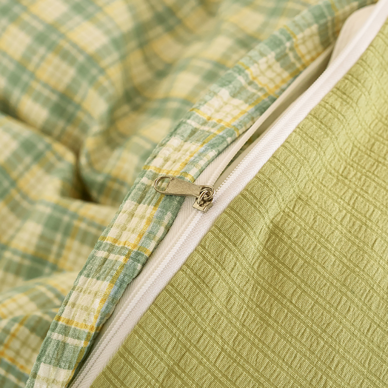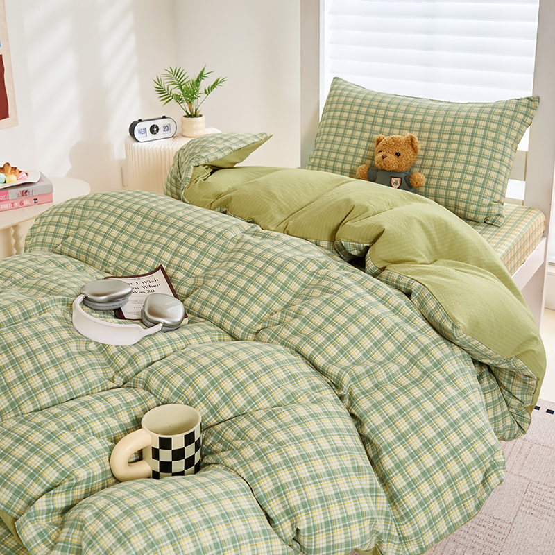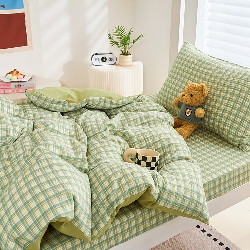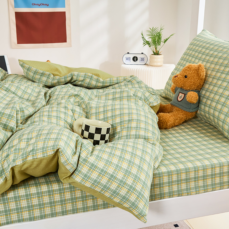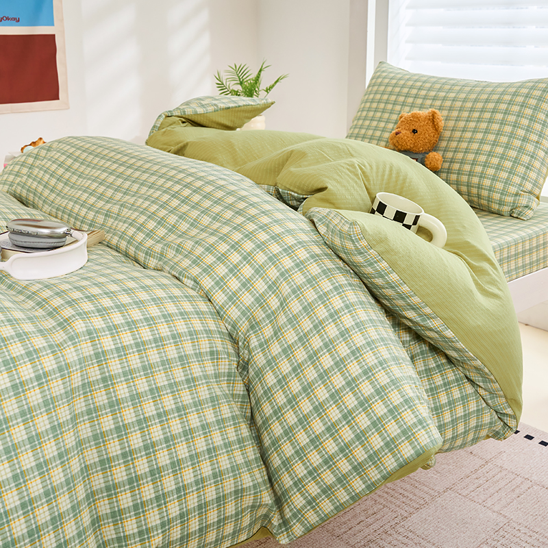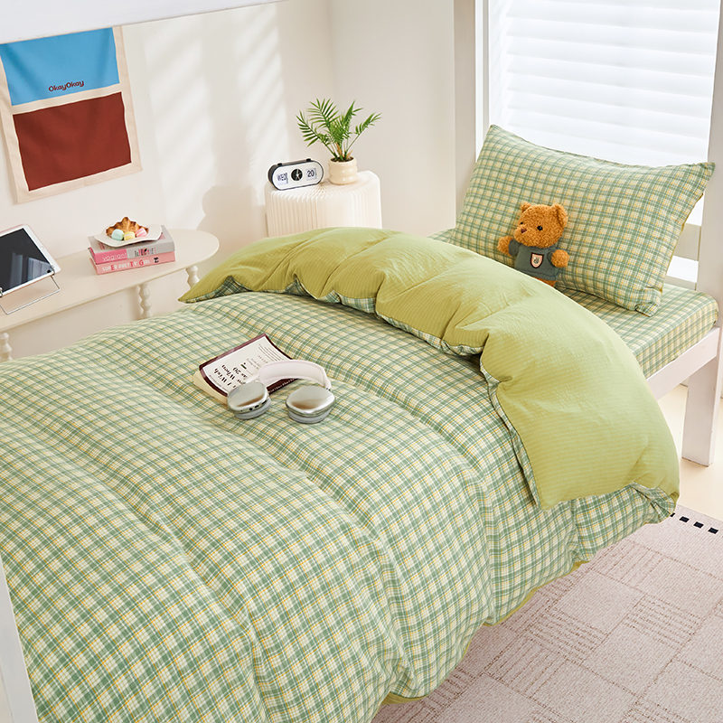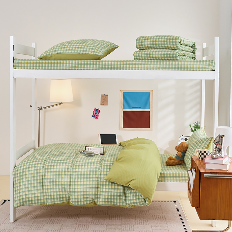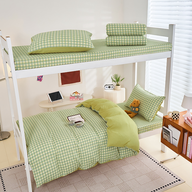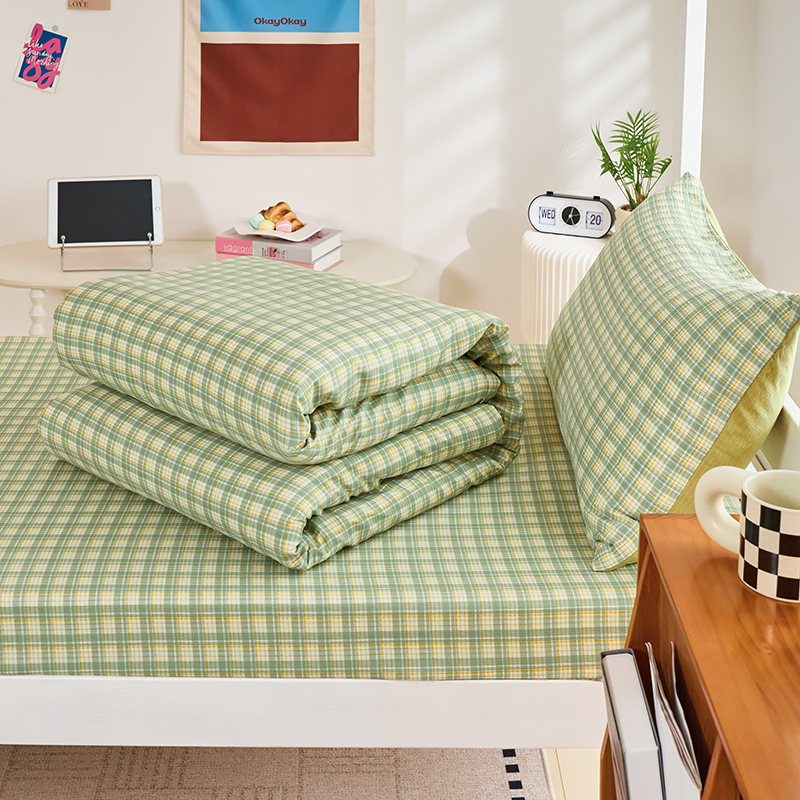 商品名称:卢赛尔 2025新款简约格子水洗学生季学生宿舍三件套 青柠-绿