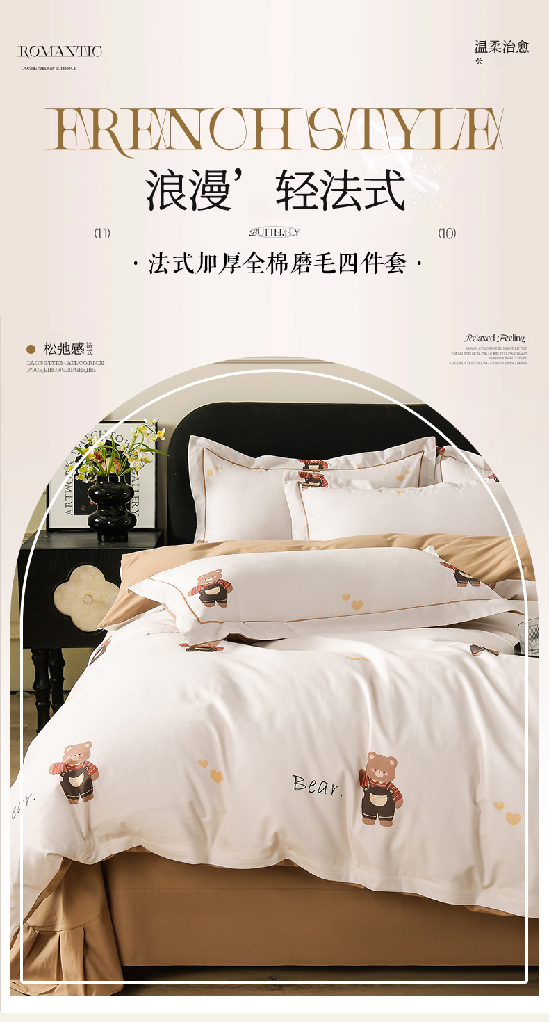 当前位置: 91家纺网 > 商品网购 > 床品套件 > 四件套 > 全棉普通四件套 > 金昱纺 2025新款法式加厚全棉纯棉磨毛四件套 口袋熊