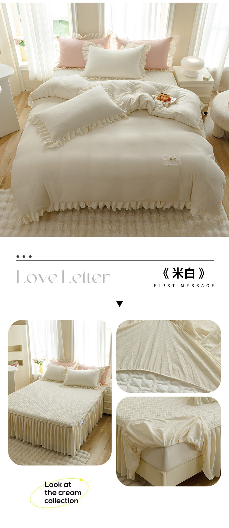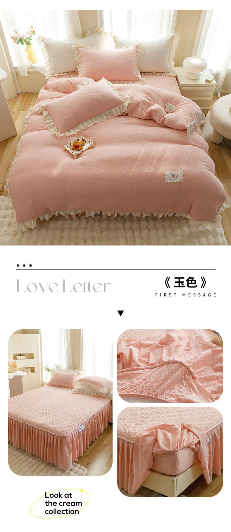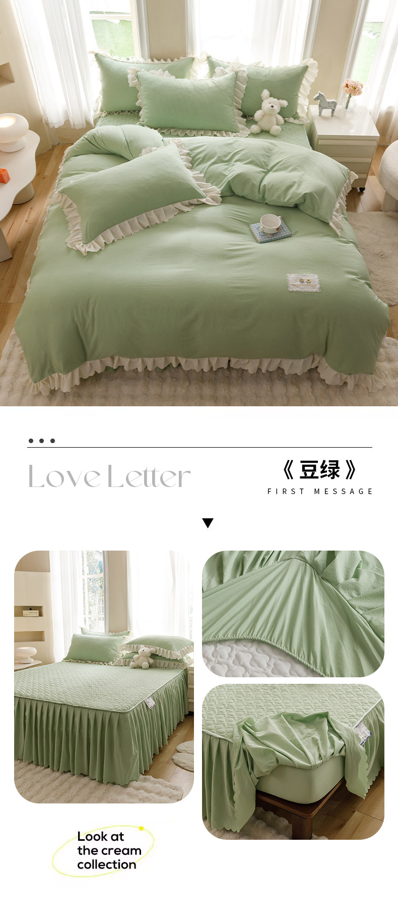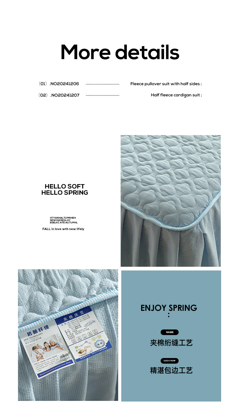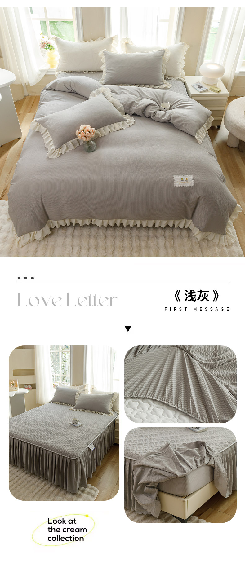 当前位置: 91家纺网 > 商品网购 > 床品套件 > 四件套 > 其它四件套 > 绒世界 2025新款四季款夹棉泡泡纱床裙床笠被套四件套系列 慕蓝