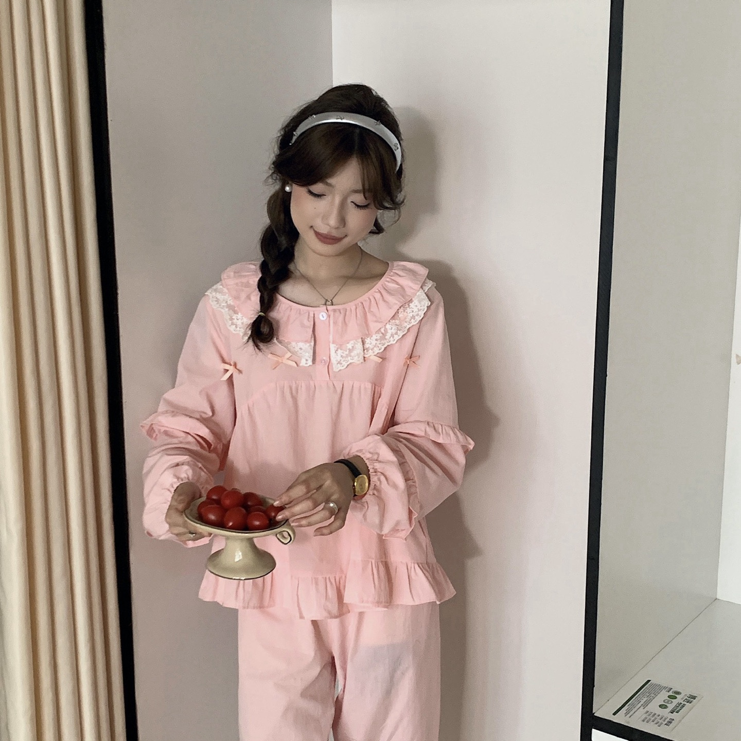 (总)妍景家居生活馆 2025新款木耳边蕾丝圆领套装