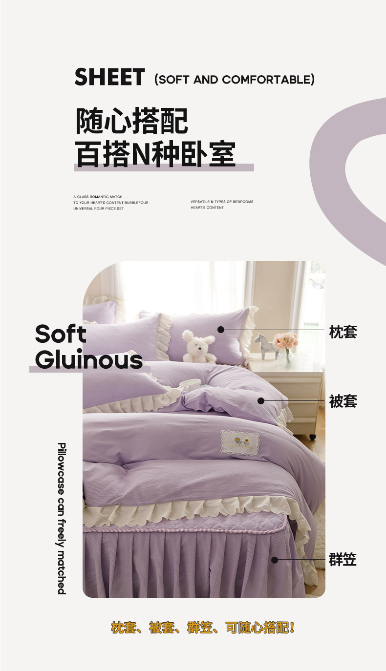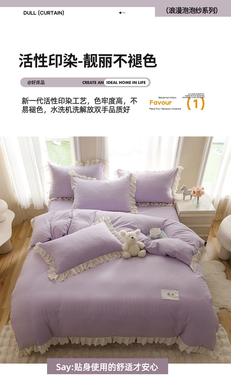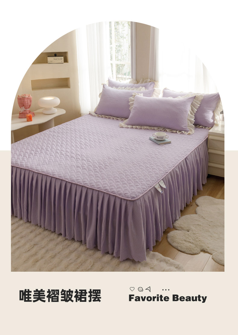 当前位置: 91家纺网 > 商品网购 > 床品套件 > 四件套 > 其它四件套 > 丝印良品 2025新款四季款夹棉泡泡纱床裙床笠被套四件套系列 紫色